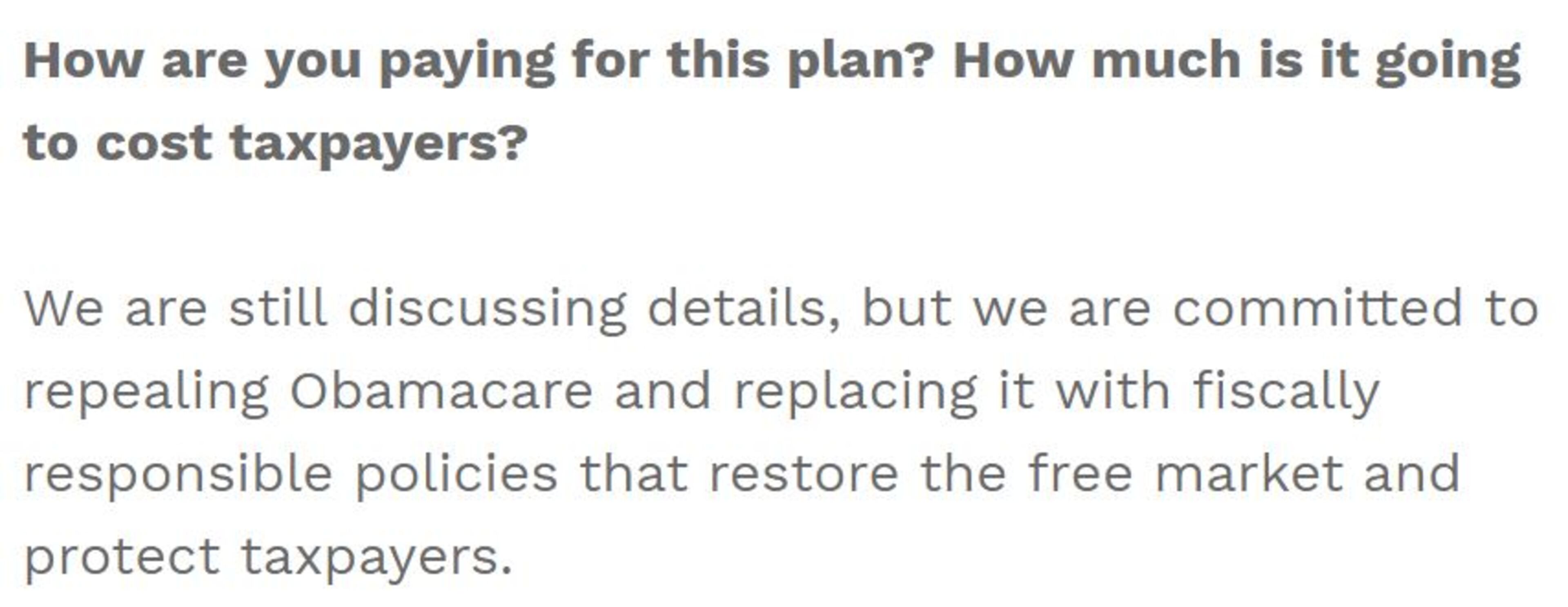 No cost estimates were issued by Republicans or by the Congressional Budget Office on this plan, leaving an important question unanswered - how much will the bill cost?