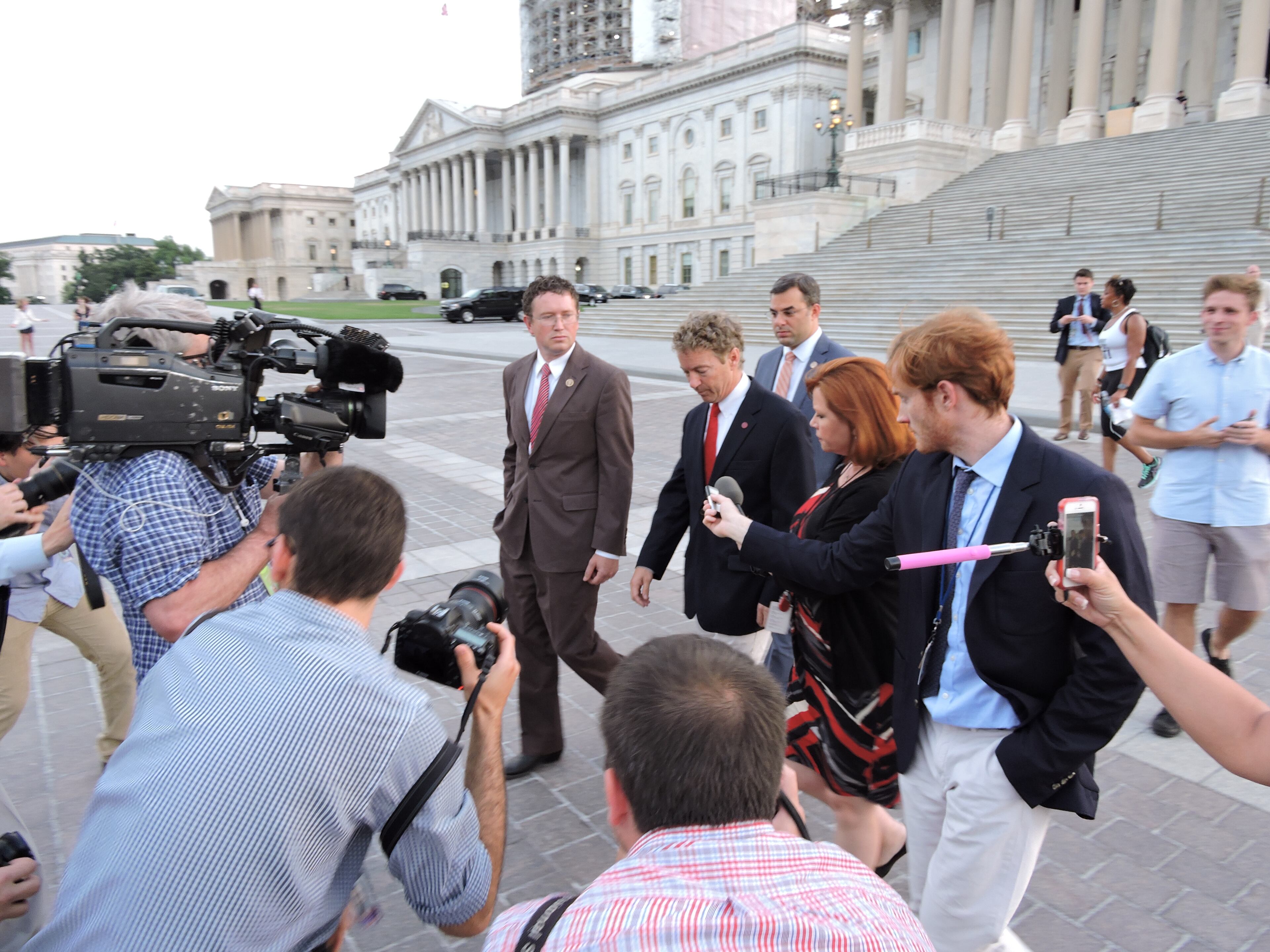 "I came here to defend the Bill of Rights and to defend the Constitution," Sen. Paul said on the Senate floor after tangling with fellow Republican Senators, as the candidate for President cheered the end of the government's ability to collect bulk telephone records.