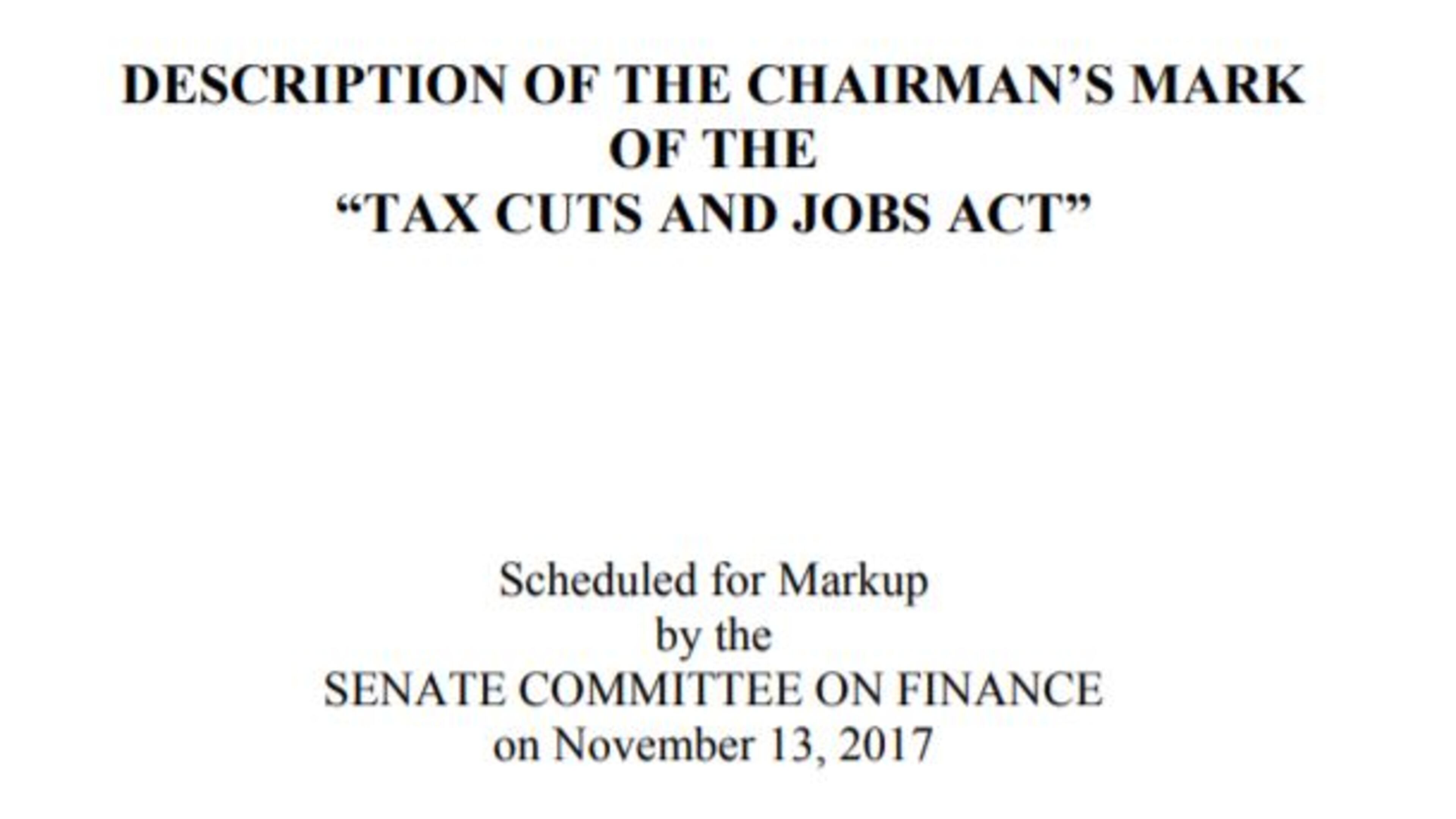 Happy reading. The Senate Finance Committee markup starts on Monday.