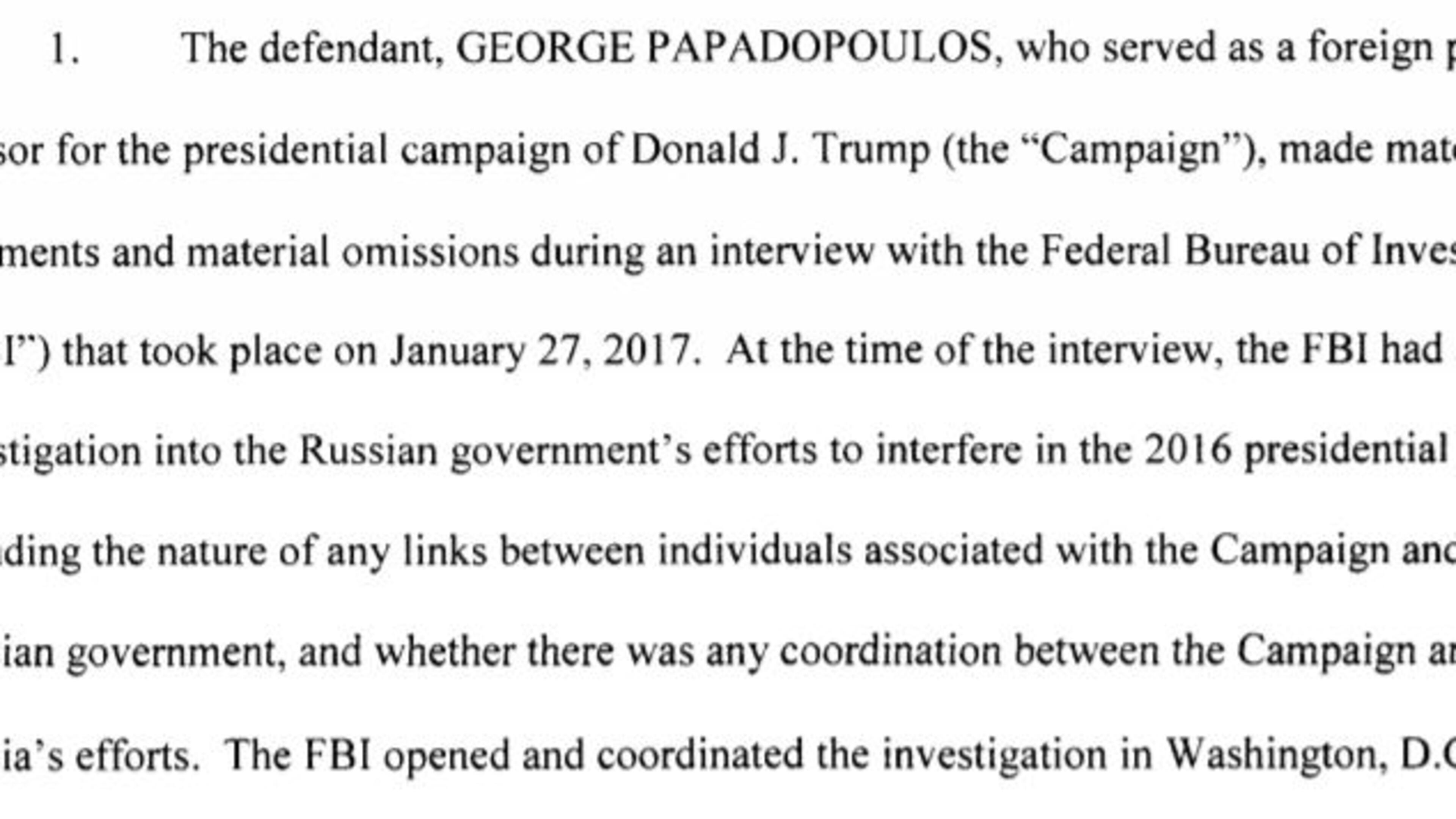 Click here to read the unsealed guilty plea involving a former foreign policy aide to the Trump campaign, who has admitted lying to the FBI about contacts with Russia during the 2016 election campaign: