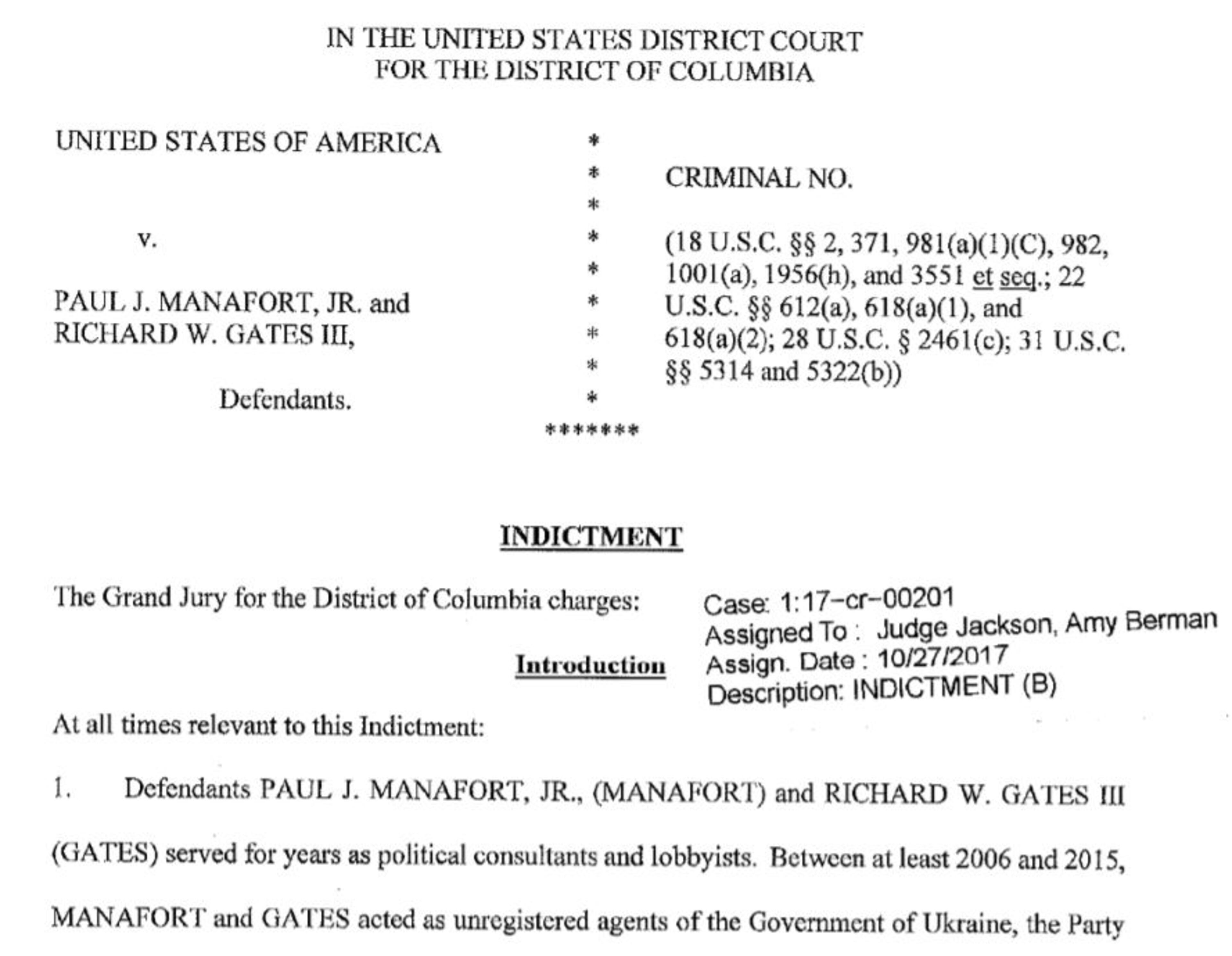 Just over five months after former FBI Director Robert Mueller was appointed as Special Counsel to investigate Russian interference in the 2016 elections, the first concrete legal actions on that investigation began to play out in Washington, D.C. on Monday morning, as a former foreign policy aide to President Donald Trump's campaign plead guilty to lying to FBI agents about contacts with Russians, while Mueller also released a 12 count indictment accusing former Trump campaign manager Paul Manafort, and one of his top associates, Richard Gates III, of money laundering, and misleading investigators.