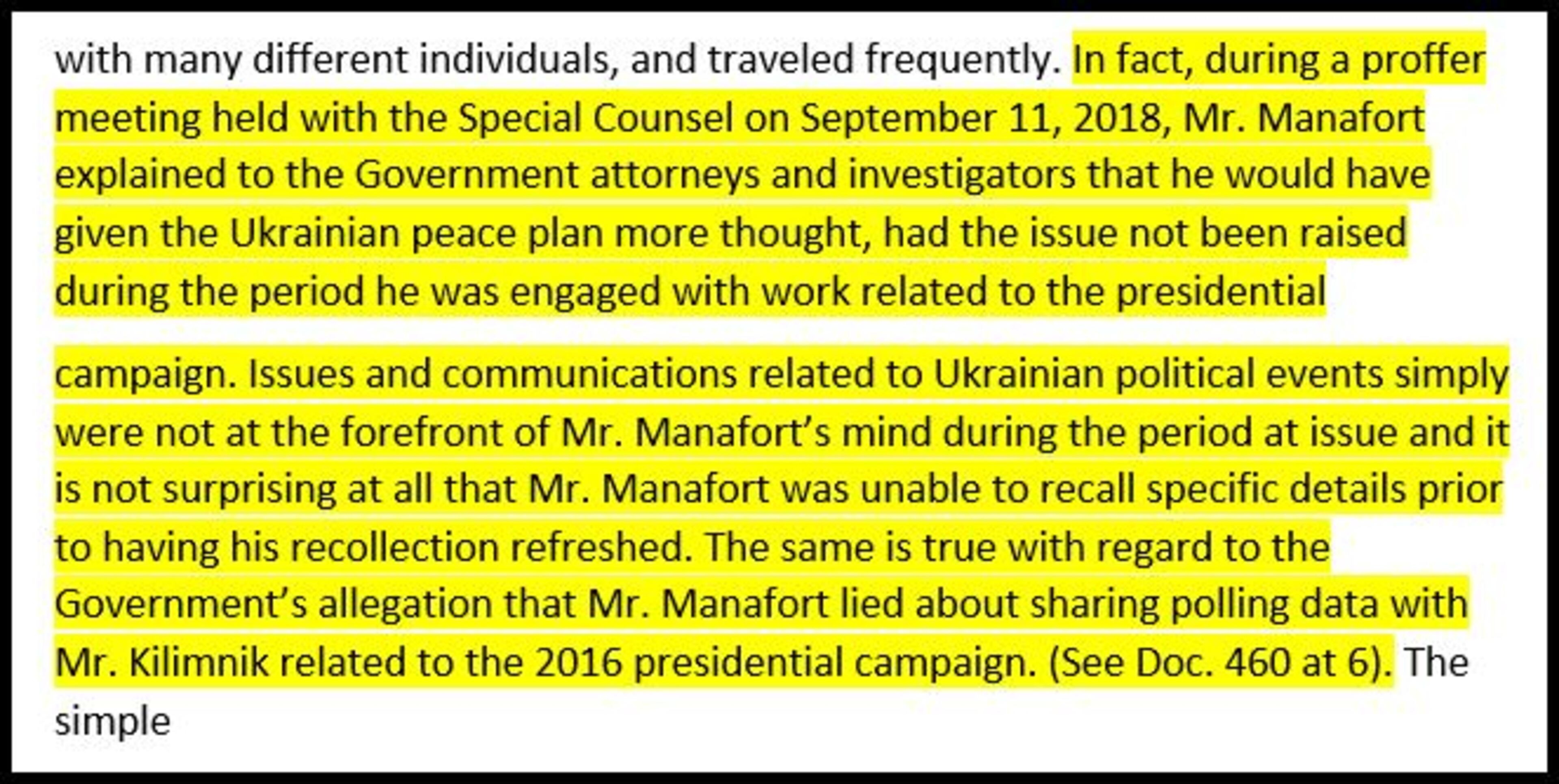 "The same is true with regard to the Government's allegation that Mr. Manafort lied about sharing polling data with Mr. Kilimnik related to the 2016 presidential campaign," the redacted text read, revealing a fresh allegation that Manafort had shared polling information with Russians during the race for the White House.