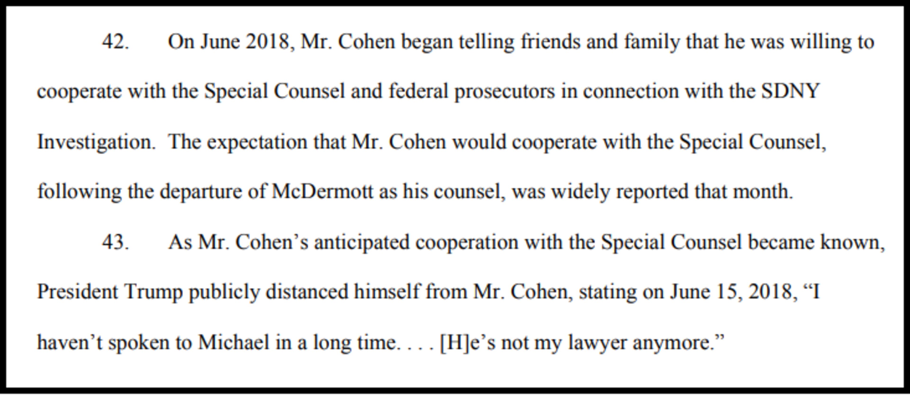 Cohen says what happened was a simple breach of contract between himself, the President, and the Trump Organization.