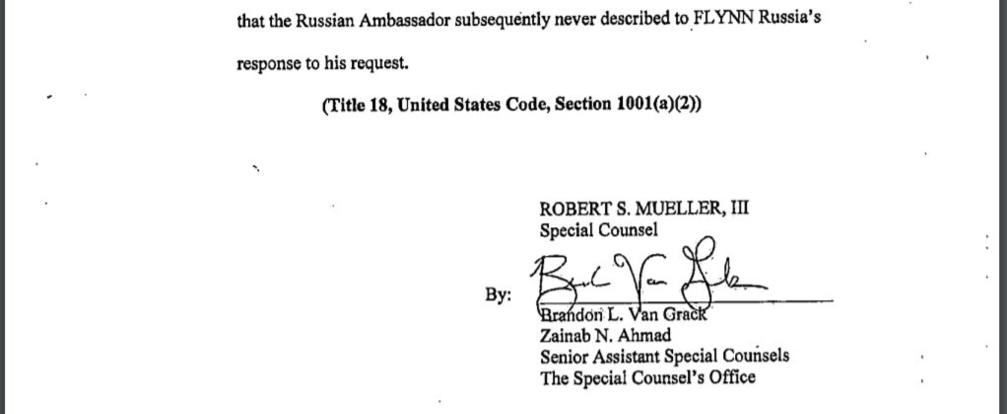 "FLYNN's false statements and omissions impeded and otherwise had a material impact on the FBI's ongoing investigation into the existence of any links or coordination between individuals associated with the Campaign and Russia's efforts to interfere with the 2016 presidential election," the document states.