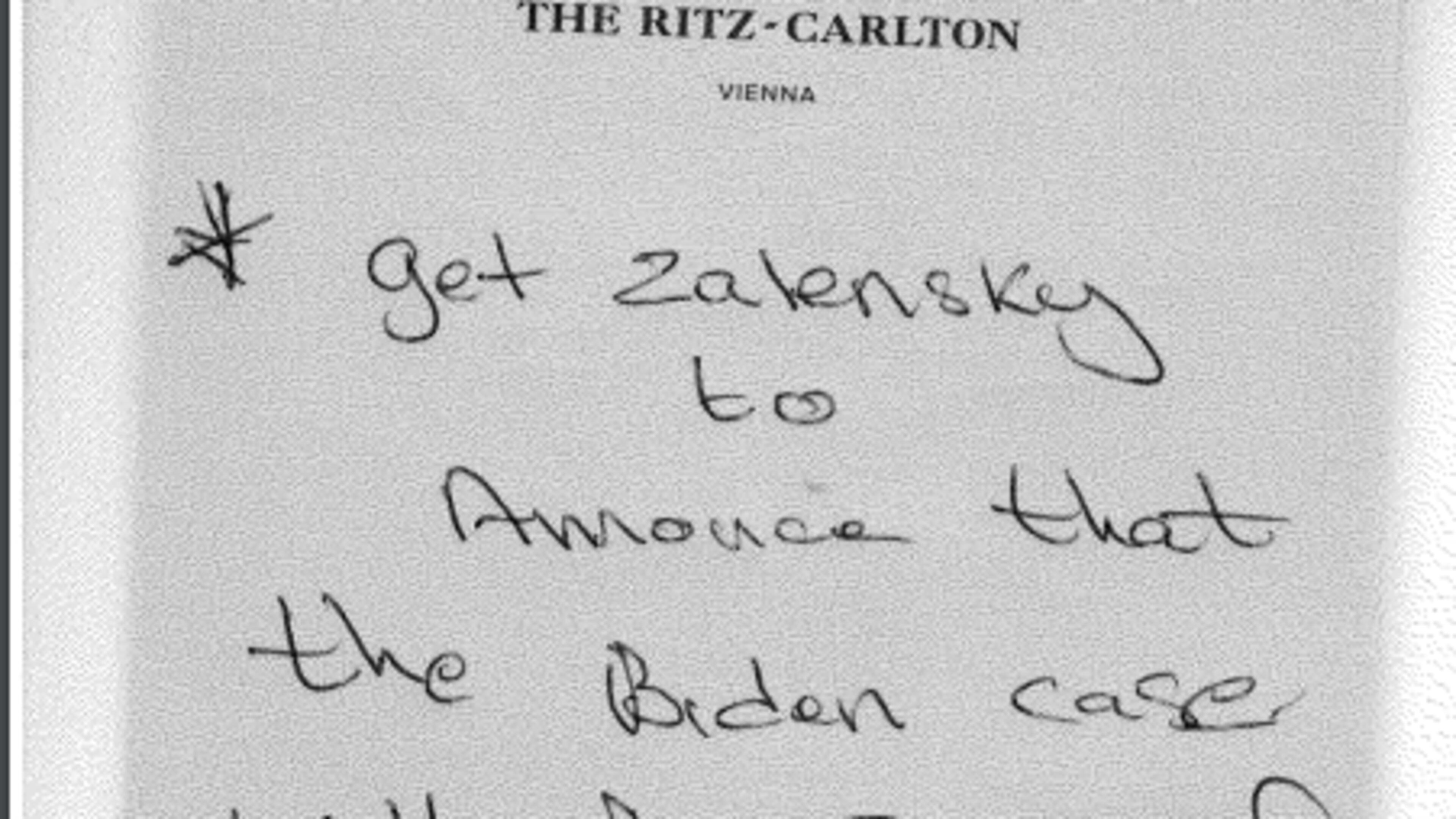 "Get Zalensky to announce that the Biden case will be investigated," one note says.