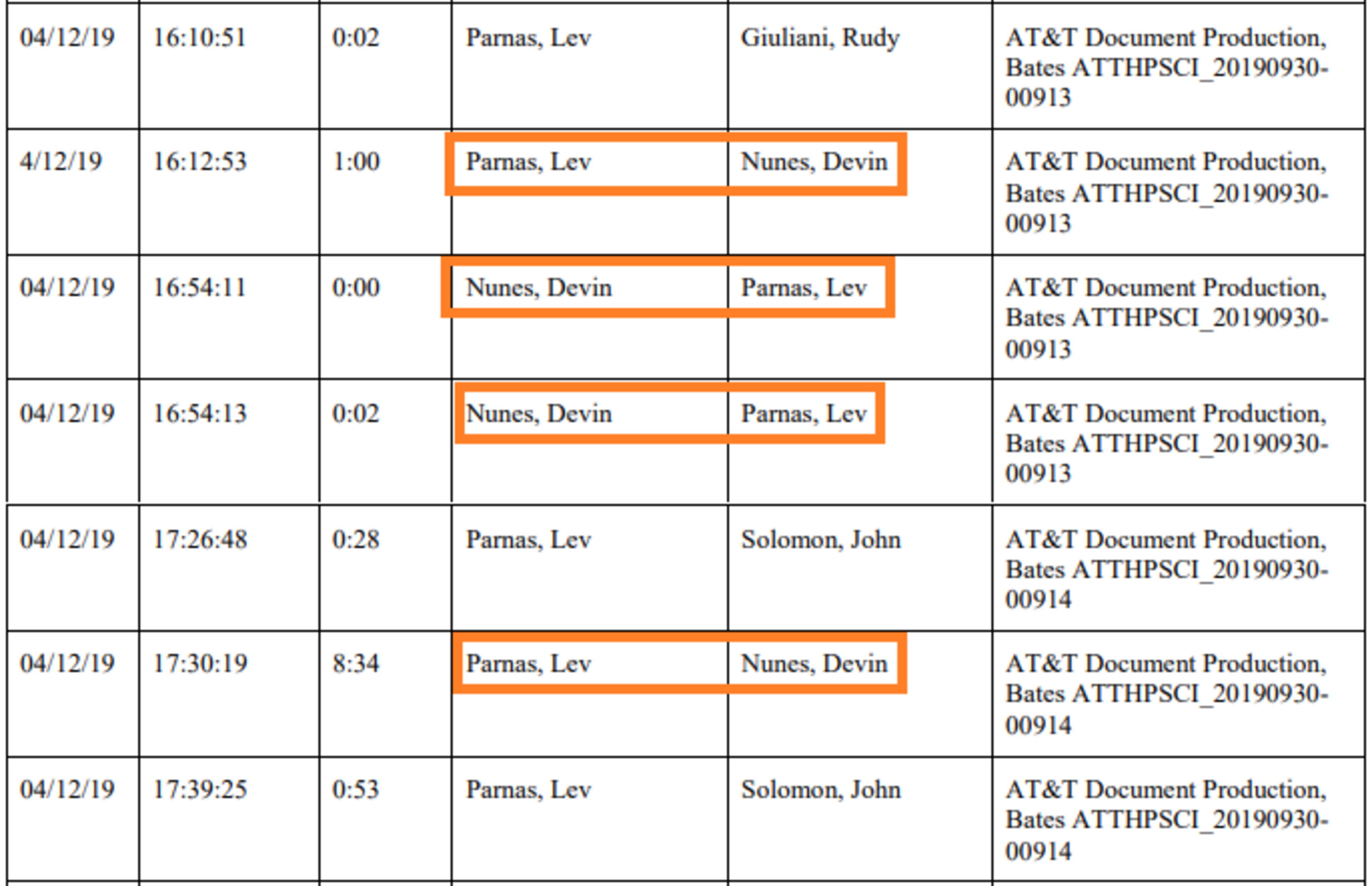 The phone records contained in the new impeachment report also showed Giuliani contacts with Rep. Devin Nunes (R-CA), the top Republican on the House Intelligence Committee, as well as phone calls between Nunes and Parnas.