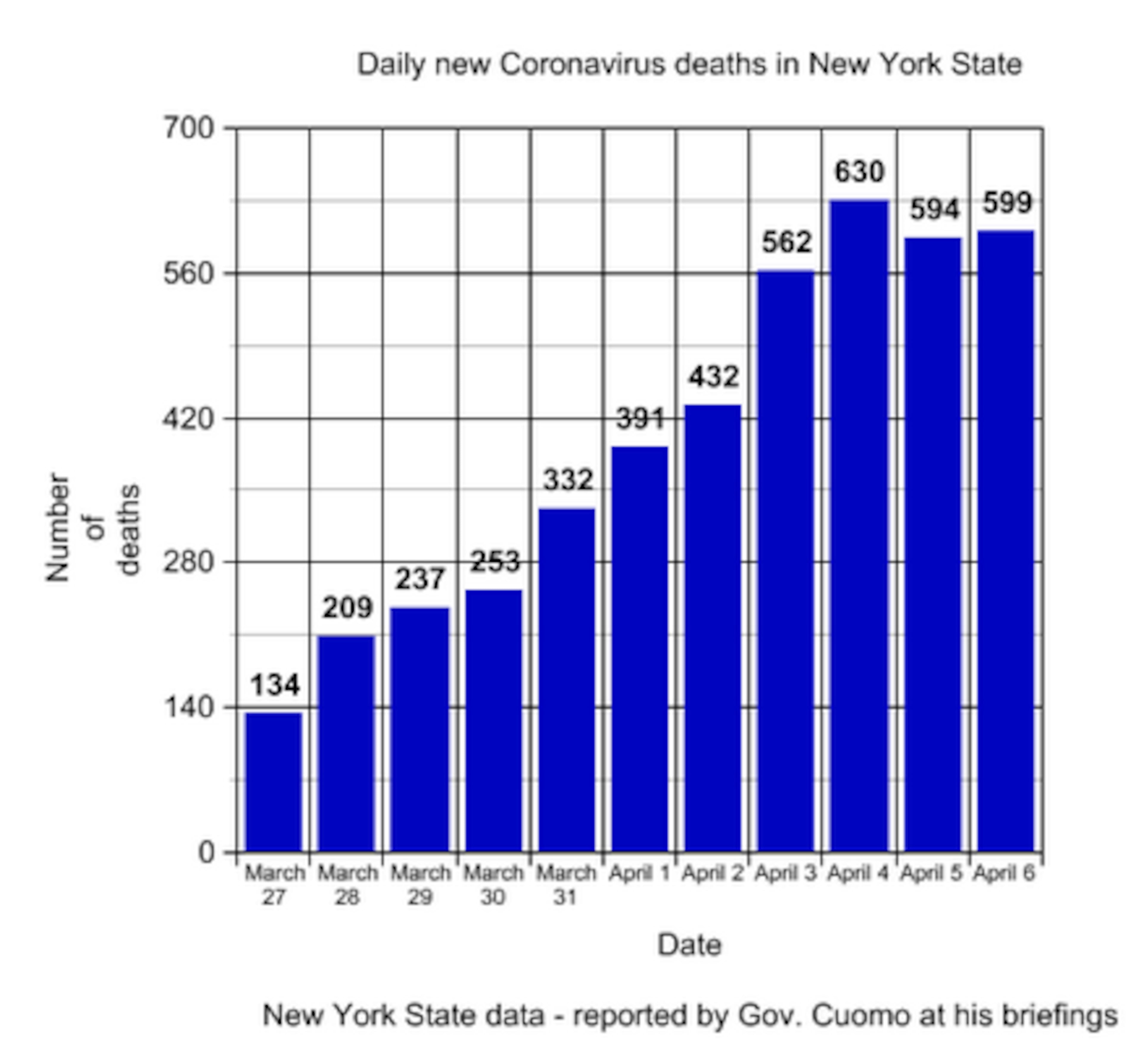 "The number of deaths are up once again," Gov. Andrew Cuomo (D) announced at his Monday briefing, though he noted that the number of deaths in his state have been 'flat for two days,' raising some hope about the course of the virus in America's largest metropolis.