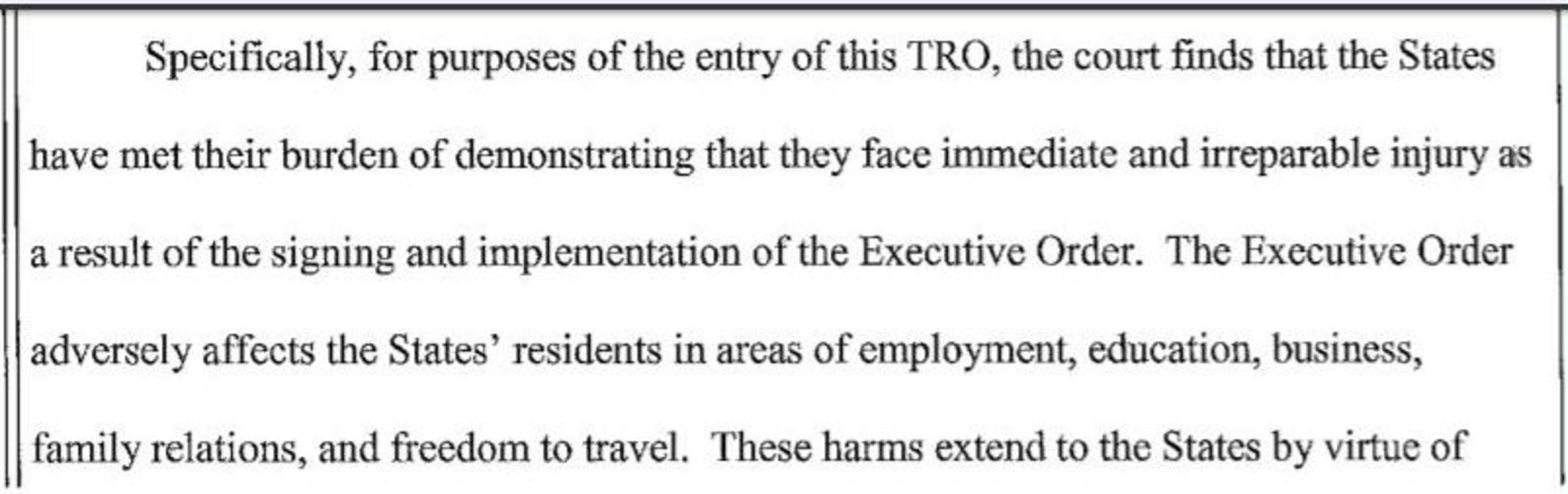 The judge in the case ruled Friday that states have been impacted negatively by the Trump order, "in areas of employment, education, business, family relations, and freedom to travel."
