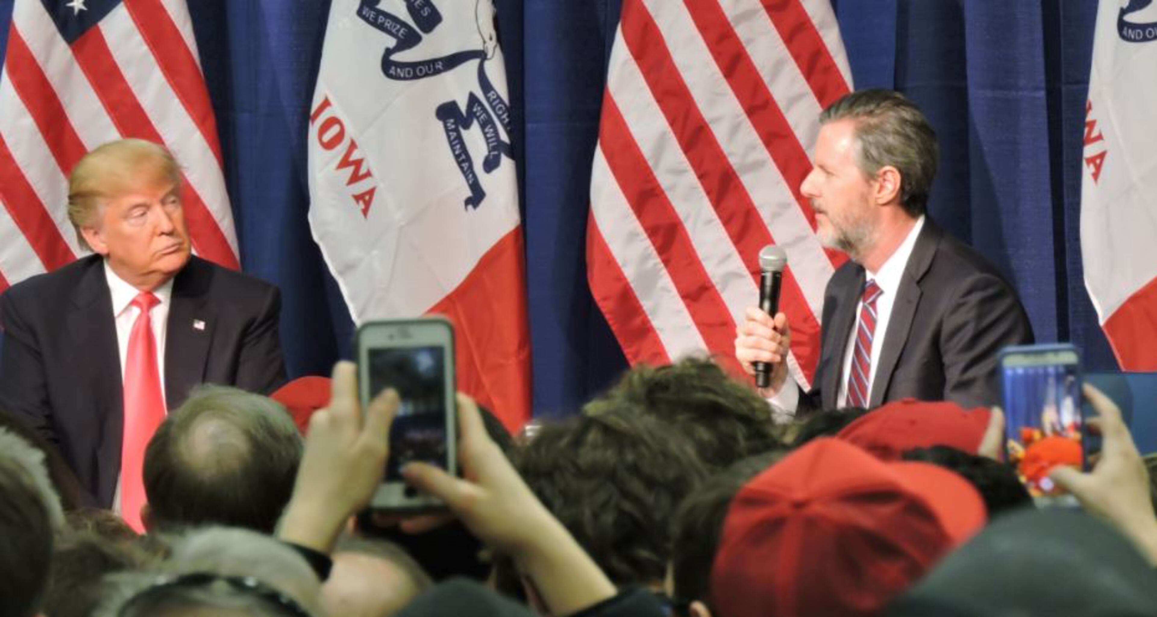 Falwell again smothered Trump in praise, sending a clear message to evangelical voters that it was okay to vote for Trump, who once again showed that he couldn't fully rein in his vocabulary while the Liberty University leader was around.