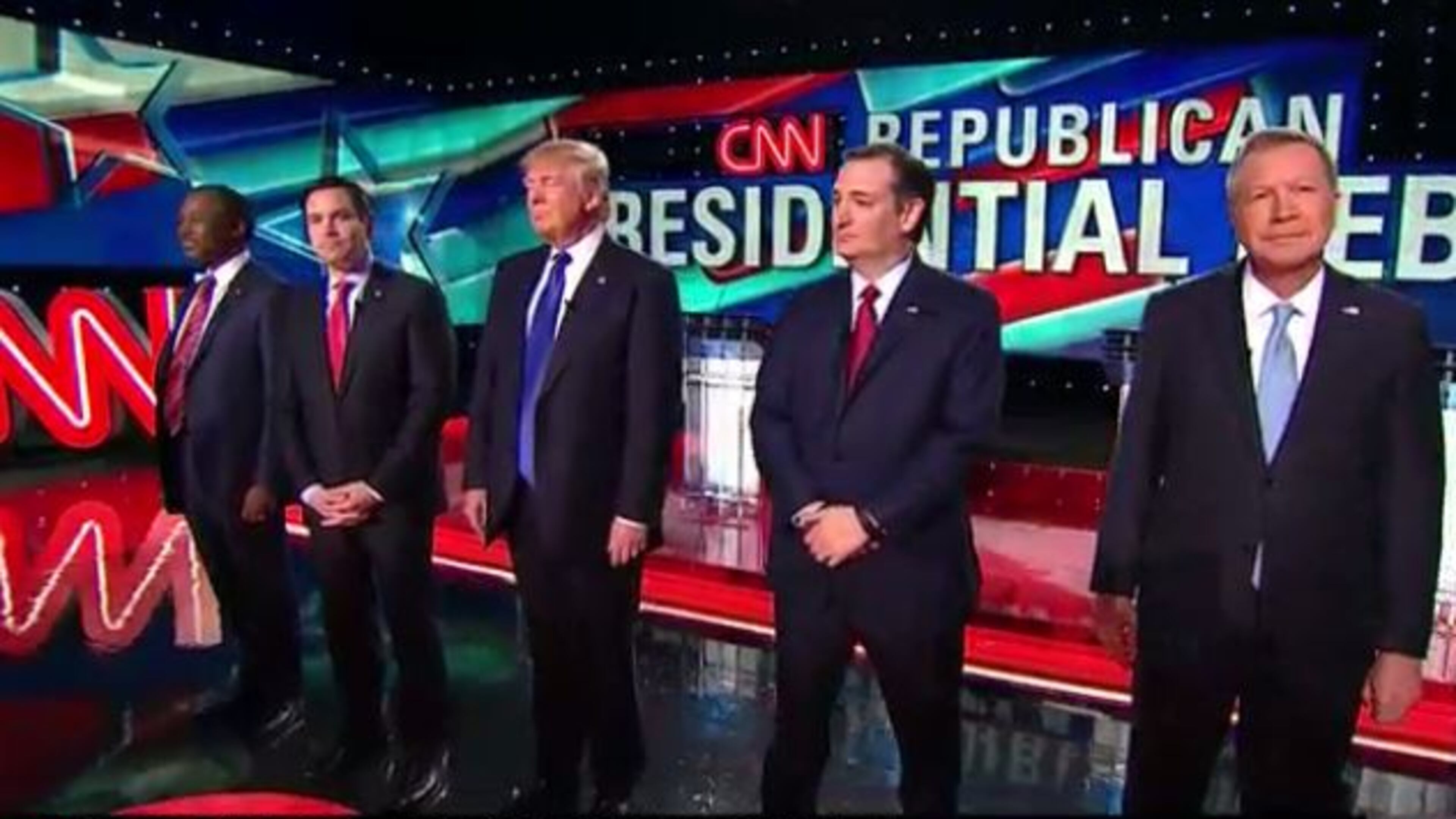 JOHN KASICH - As in past debates, Kasich stuck to his script, which was to avoid getting into any mudslinging involving Donald Trump, and to instead repeatedly stress his experience, and his record as the Governor of Ohio and a veteran member of Congress. "I balanced the budget," Kasich said at one point, as he tried over and over again to sell himself as someone who can get the job done on difficult issues. Kasich did not really play a central role in this debate.