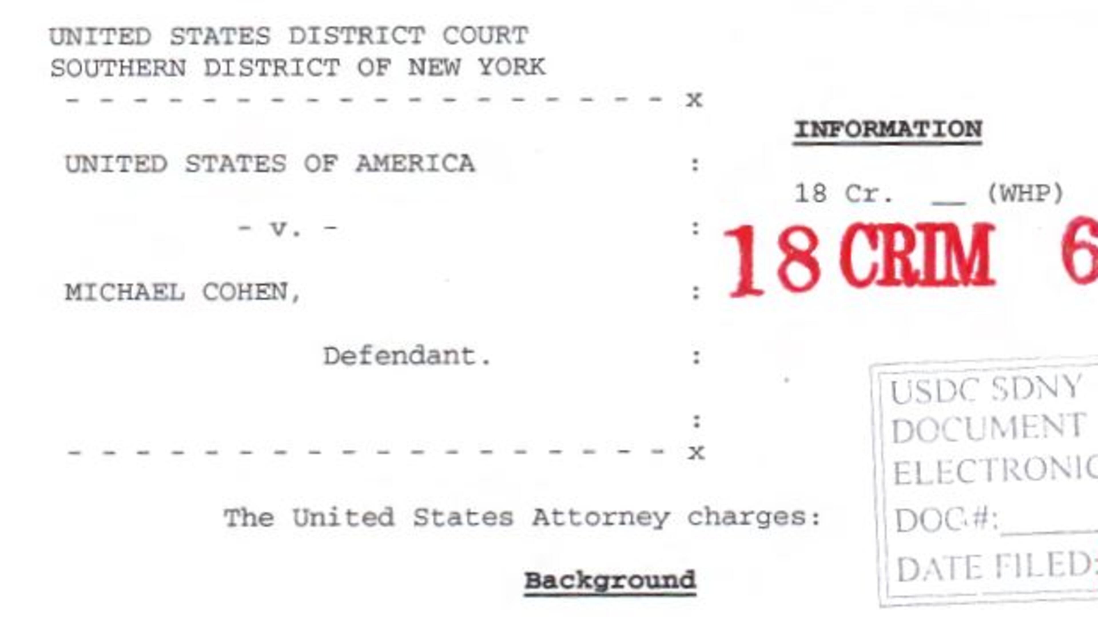 Read the documents from Michael Cohen's guilty plea