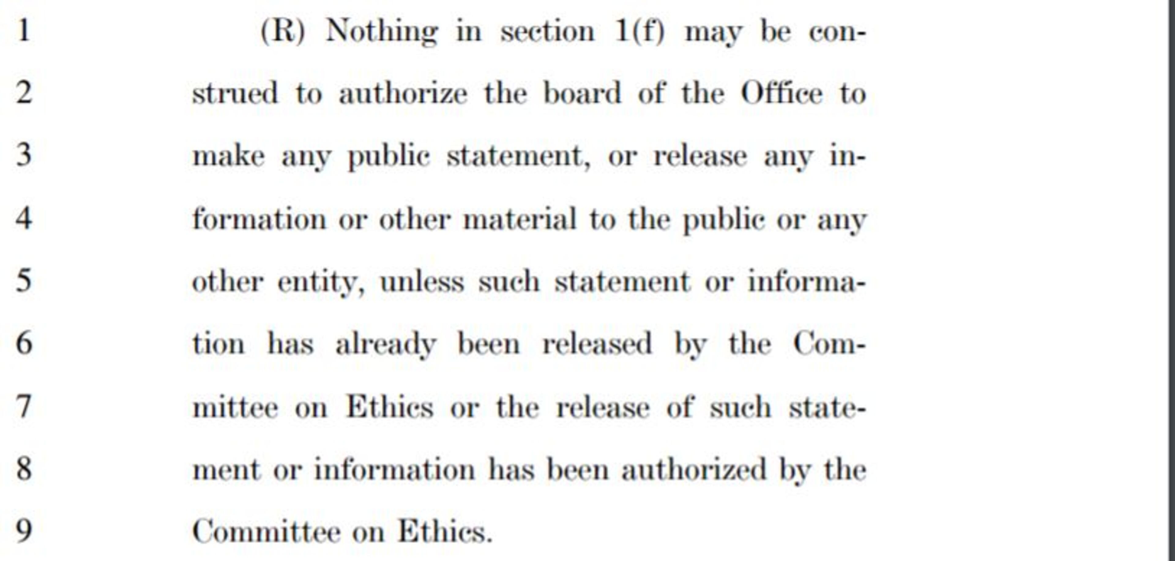+ The board would no longer be allowed to make public its referrals to the House Ethics Committee.