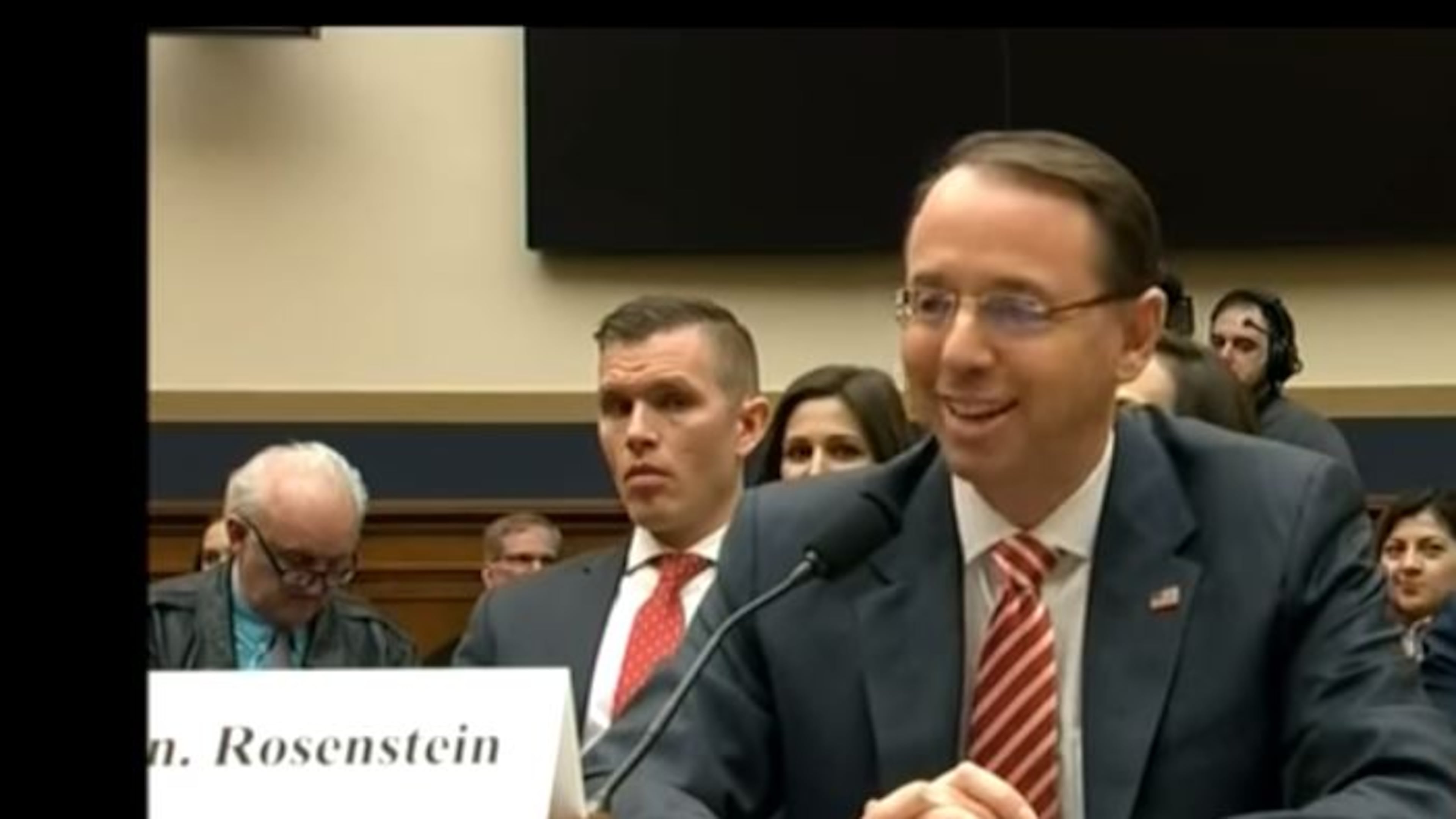 "No, I'm not," Rosenstein said, flashing a big grin at the witness table.