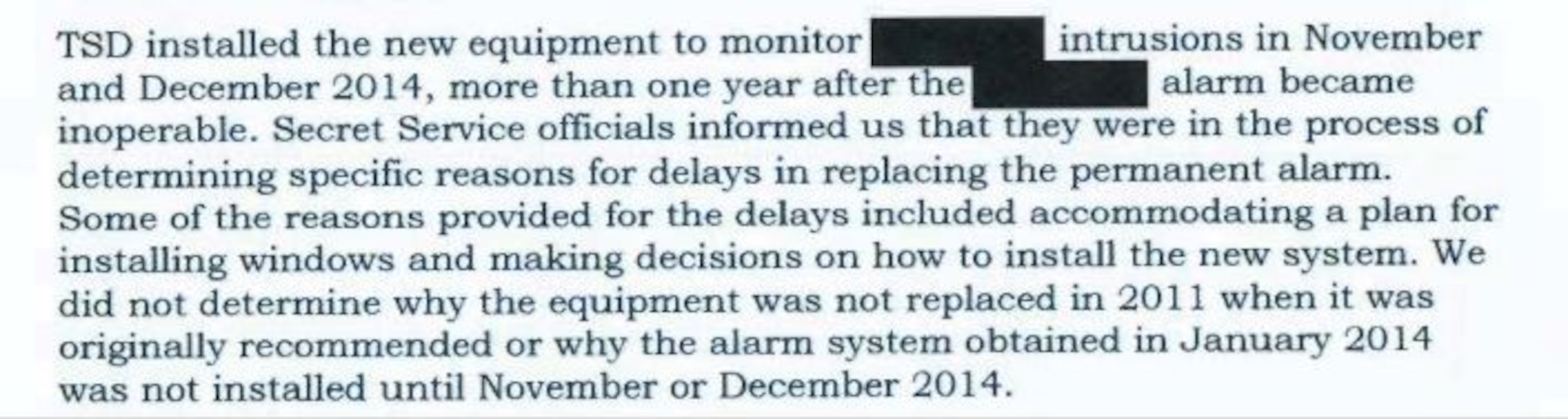 The new report from the Inspector General of the Department of Homeland Security said there was discussion as early as 2011 about replacing the alarm, which finally stopped working in 2013.