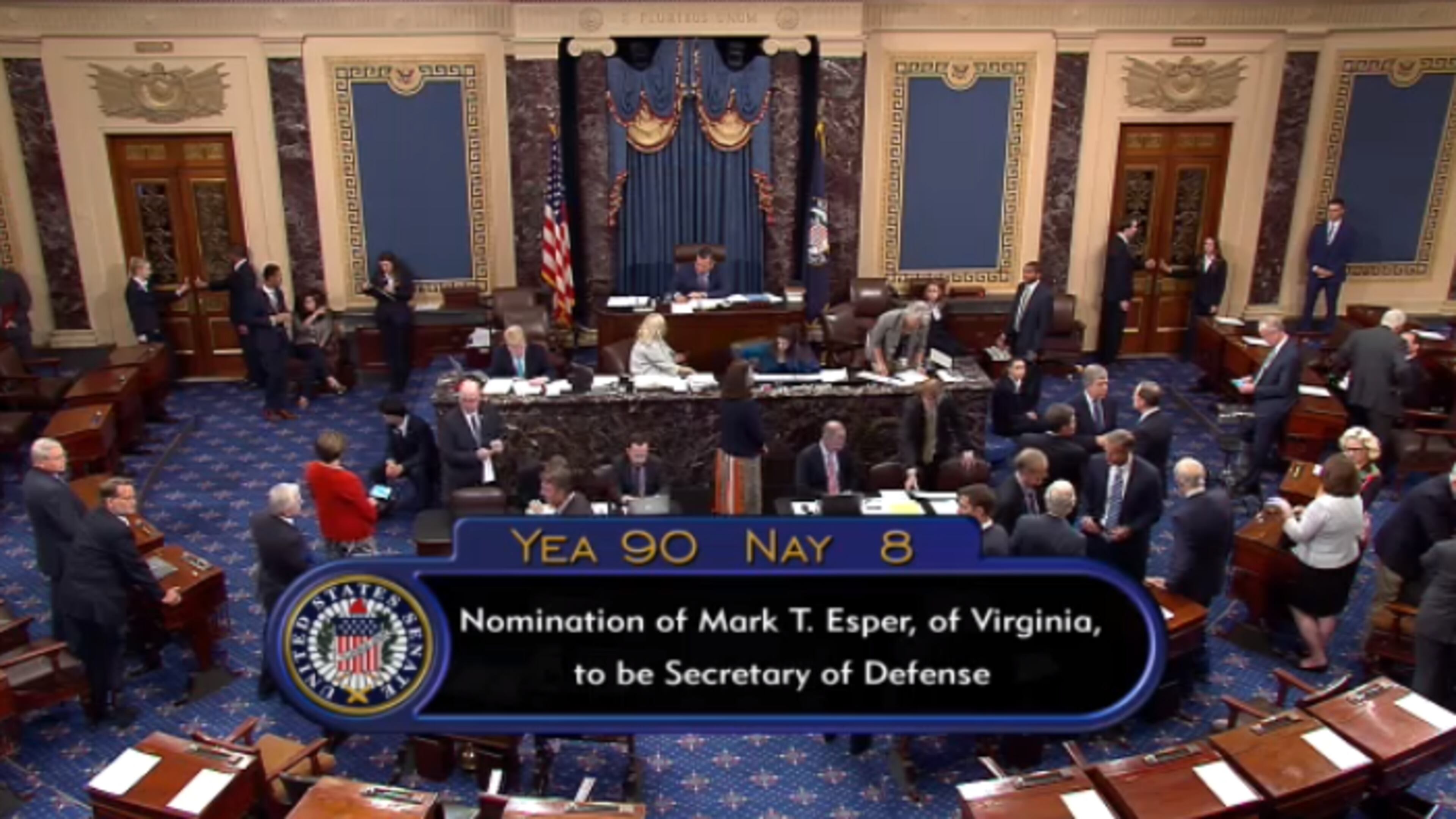 After nearly seven months without a permanent civilian leader at the Pentagon, the U.S. Senate voted overwhelmingly on Tuesday to confirm Army Secretary Mark Esper as the next Secretary of Defense.