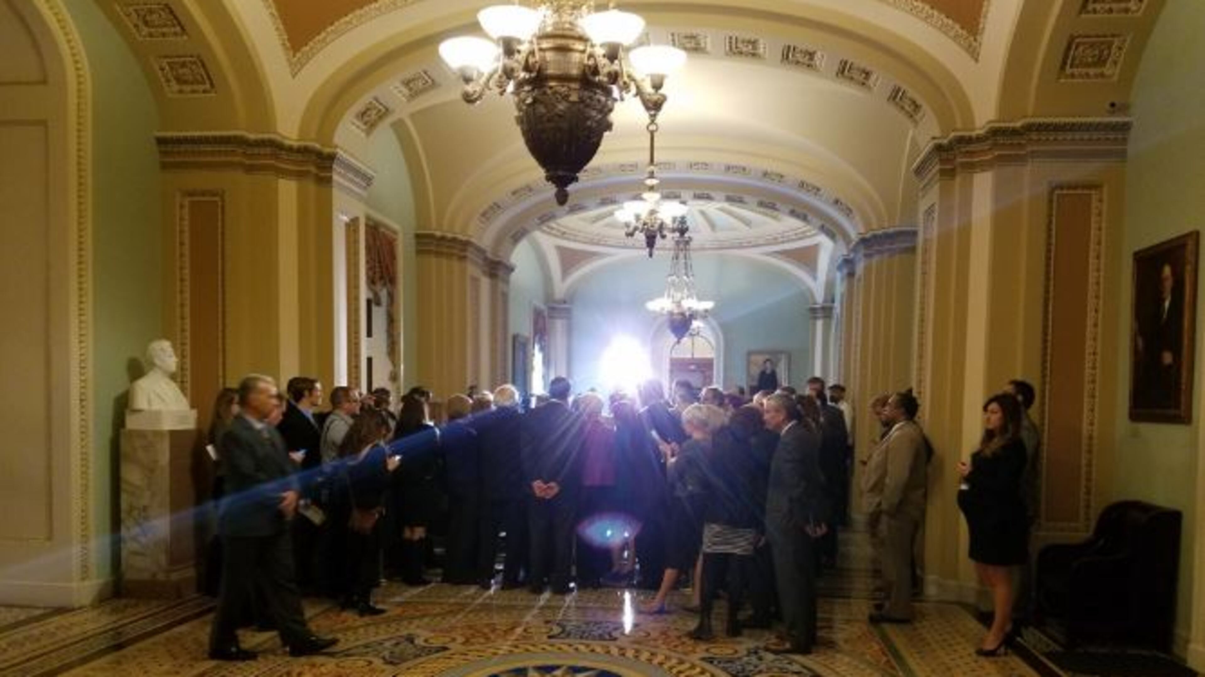 While Democrats set their leadership team for next year, Senate Republicans were also meeting just down the hall in the Capitol this morning, as they voted unanimously to keep Sen. Mitch McConnell (R-KY) as Senate Majority Leader.