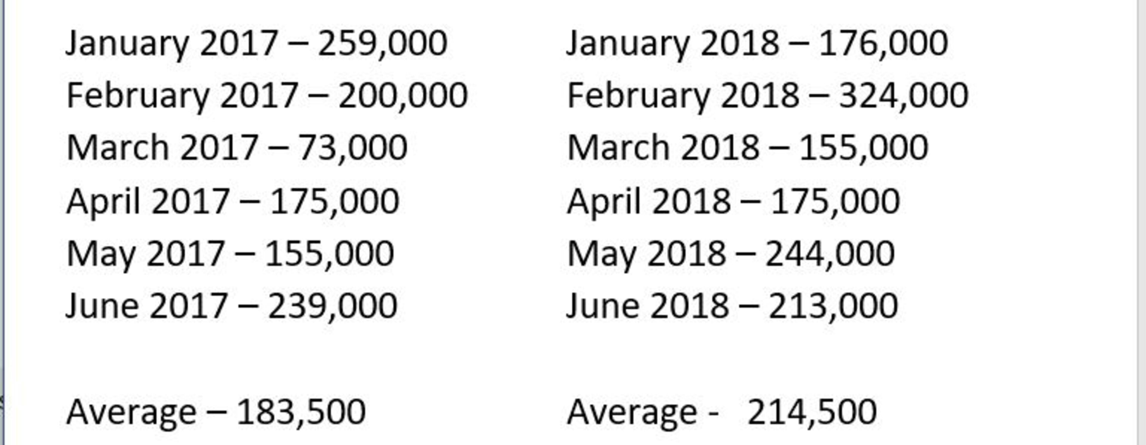 Compared to the first six months of 2017, job growth is averaging 31,000 more jobs per month, as the U.S. economy continues to tap out solid job creation numbers.