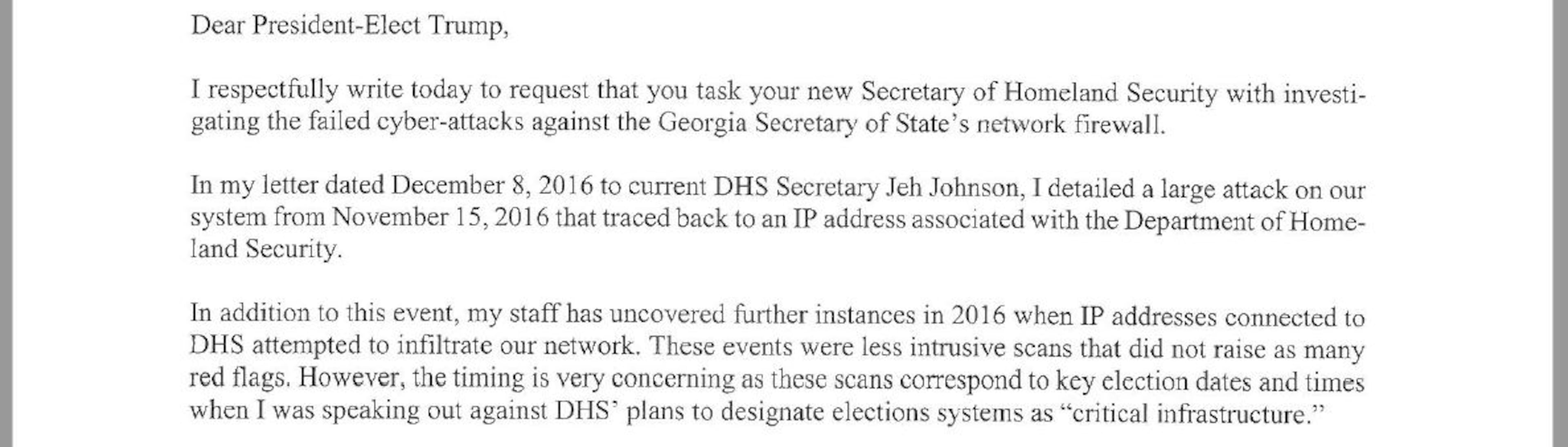 Frustrated with a lack of answers and information coming from the Department of Homeland Security, the Secretary of State of Georgia is now asking President-Elect Donald Trump to help figure out why the Department of Homeland Security was repeatedly trying crack a state government computer network that deals with elections.
