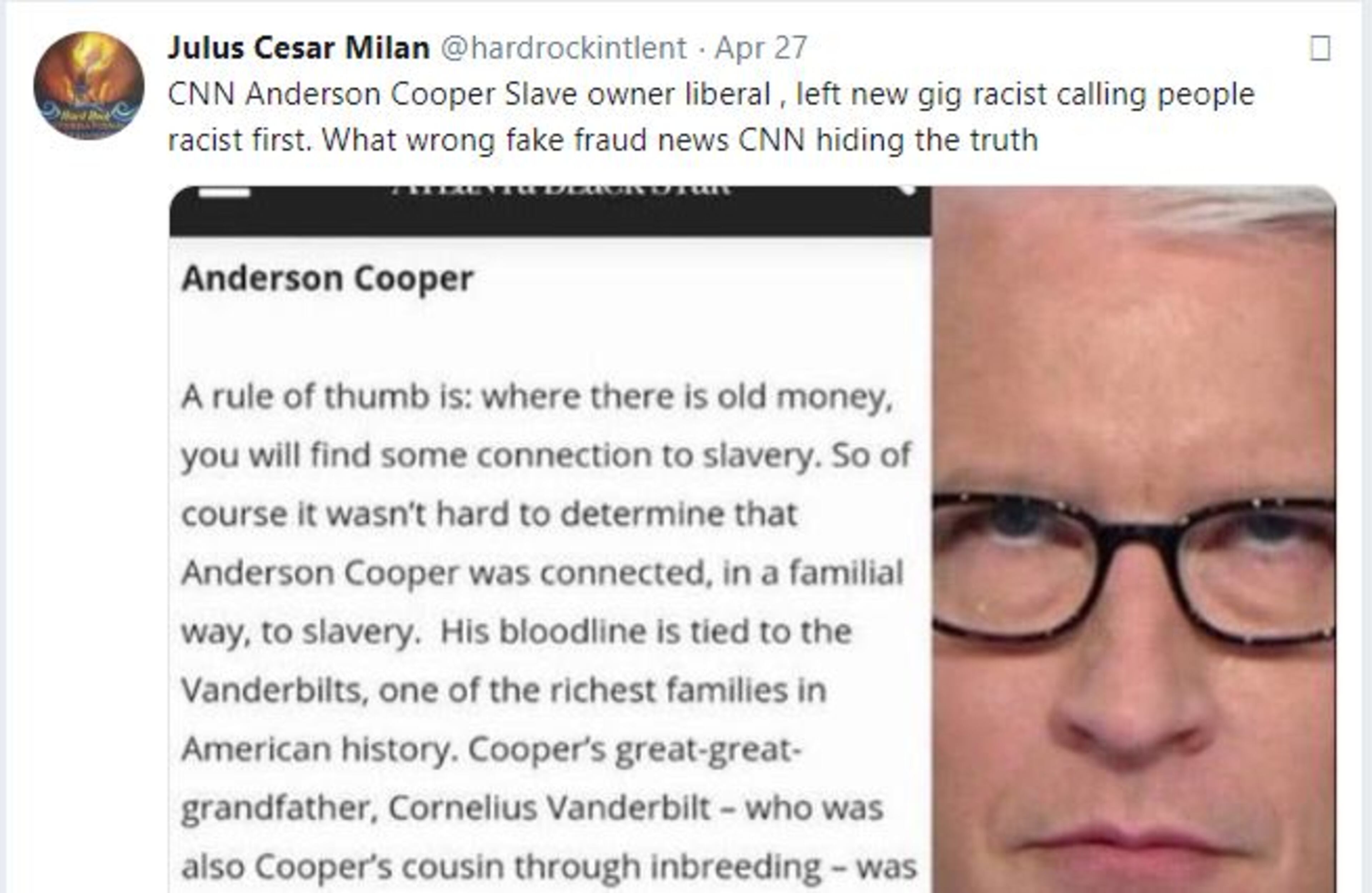 A second Twitter account - @hardrockintlent - utilized the name Julus Cesar Milan.