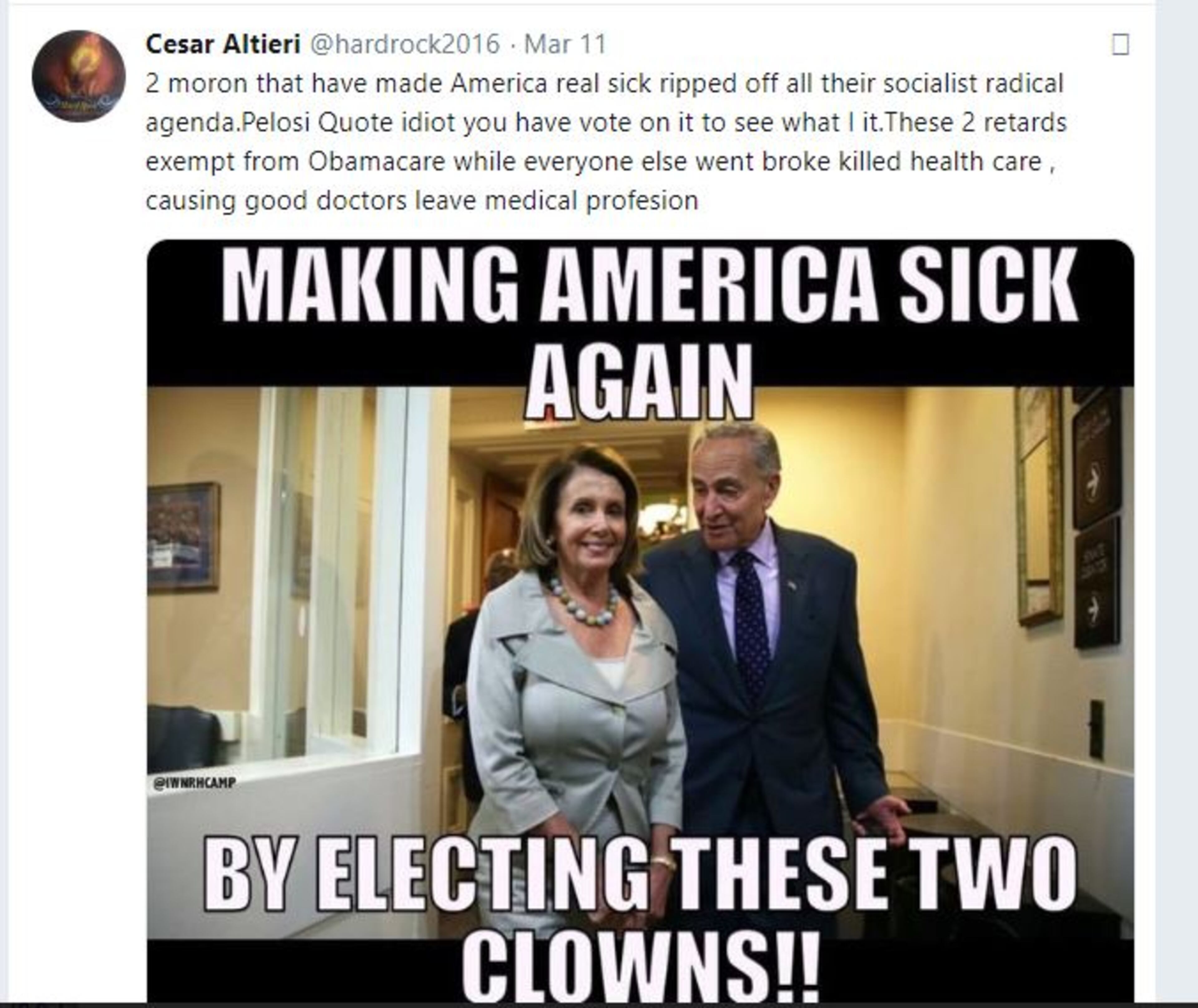 Other tweets attacked Democrats in the Congress over policies on health care, like this one from March 11 on the Obama health law.