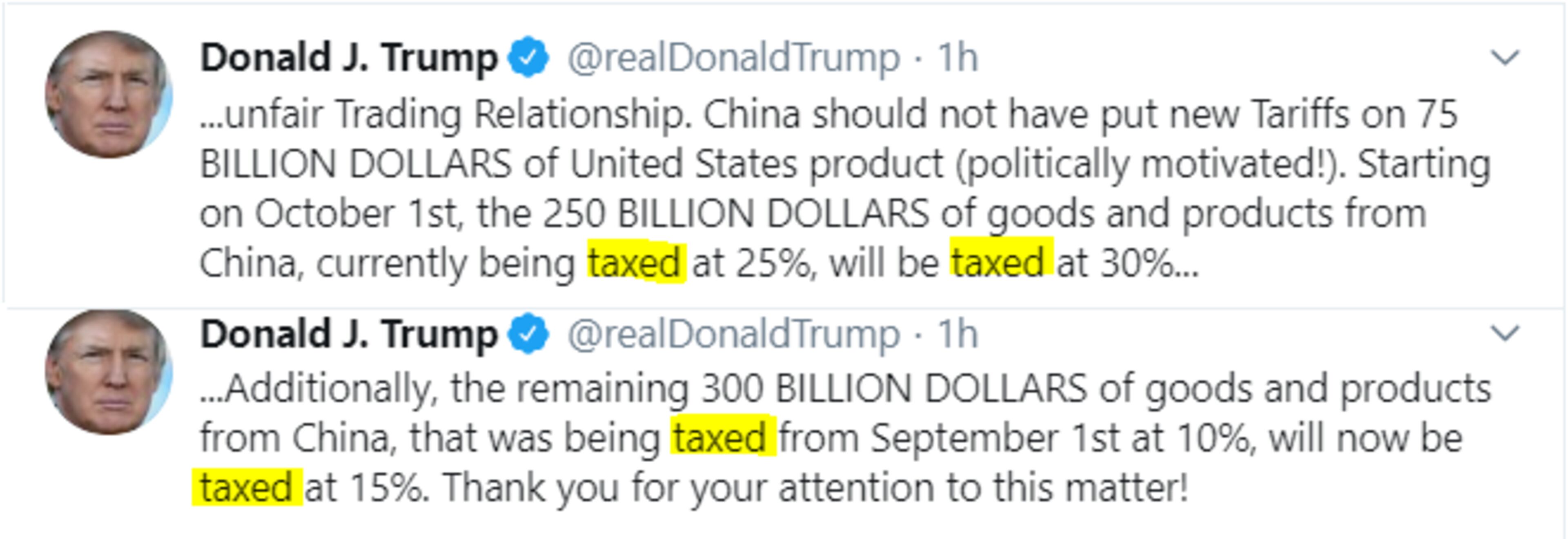 Even President Trump has referred in recent days to his tariffs on China as "taxes."