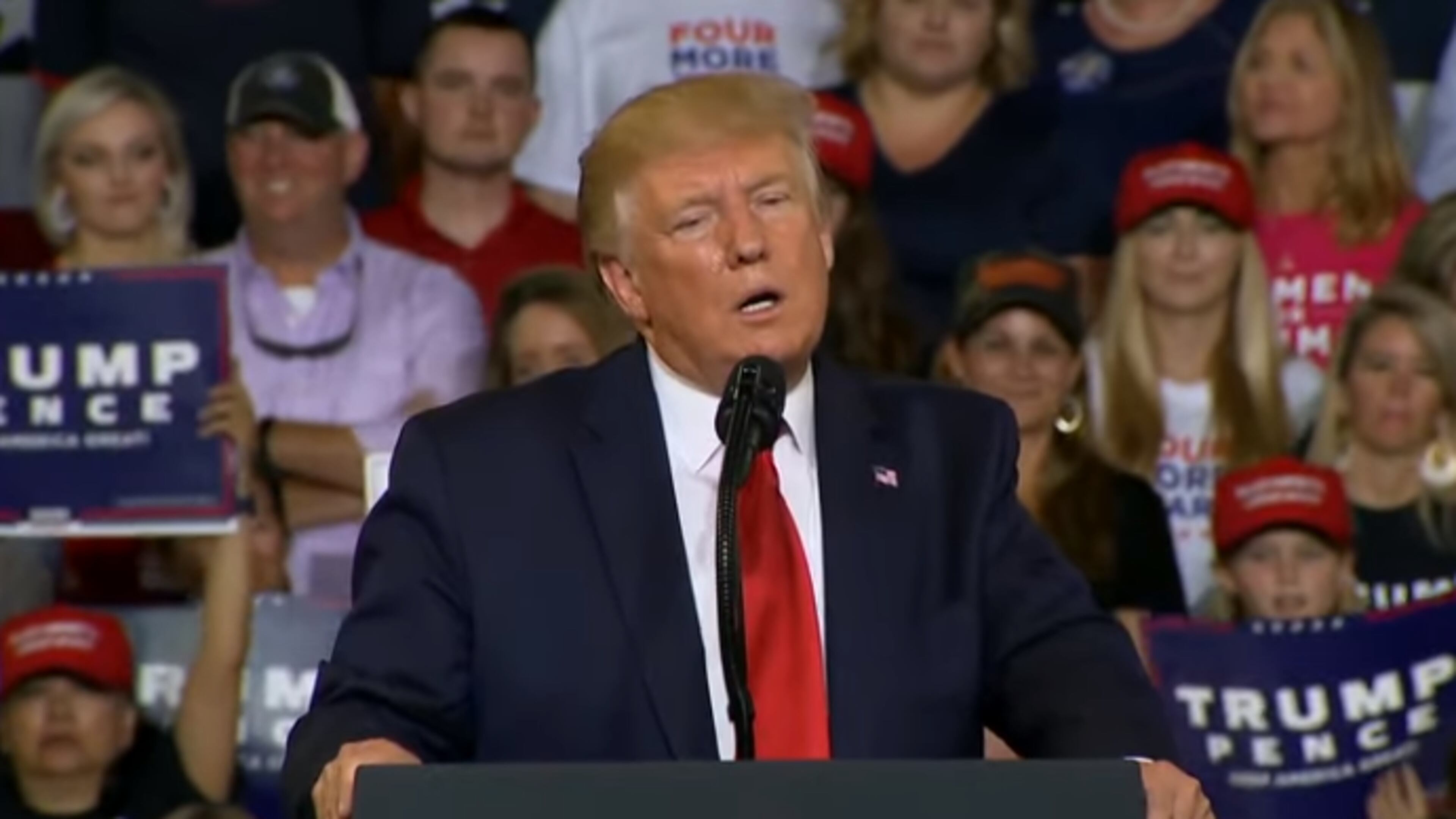Crowd in Greenville, NC chants "send her back" while President Trump speaks about Rep. Ilan Omar (D-MN).