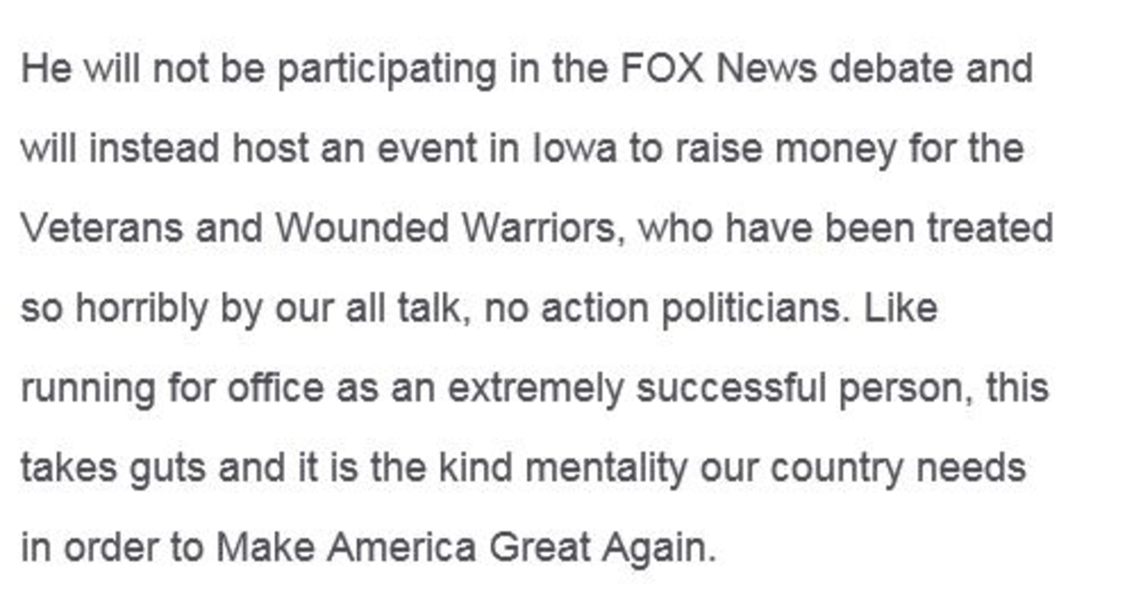 The threat to boycott the Fox News debate echoed similar threats that Trump has made before, like one debate where he demanded that CNN contribute money to veterans groups, or else he would not participate.