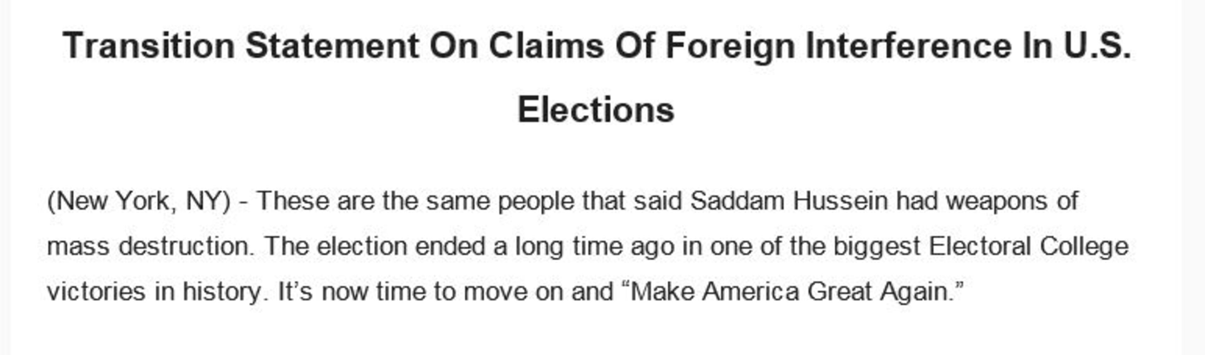 "These are the same people that said Saddam Hussein had weapons of mass destruction," the terse statement from the Trump Transition read, in what was a direct rebuke of the CIA.