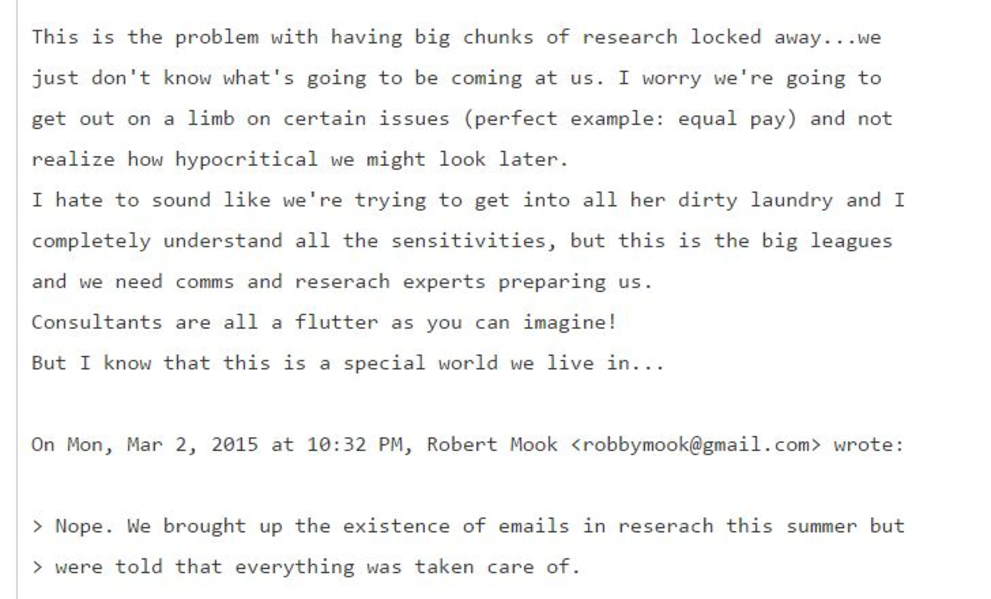 1. More evidence of the struggle over Clinton's emails. If the Podesta emails have taught us anything, it is that some in the Clinton Camp liked the idea of just dumping all of her emails from her time as Secretary of State to the public, to get it over with. But that was not an option that was favored by Clinton, and the drip, drip, drip continues to this day, combining with the interest of the FBI in a way that has damaged her campaign for President. One new email today captures Robby Mook telling Podesta that he's worried about being blindsided by revelations: