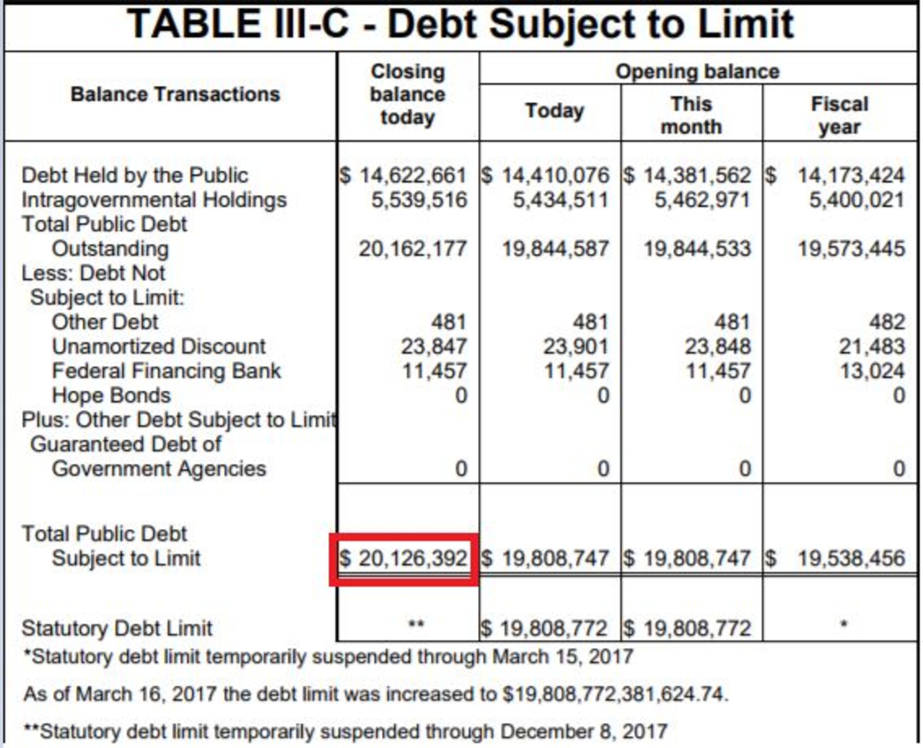 After President Donald Trump signed legislation on Friday to allow for an increase in the nation's debt limit, the Treasury Department reported on Monday that new numbers showed the public debt going over $20.1 trillion, jumping by $317 billion.