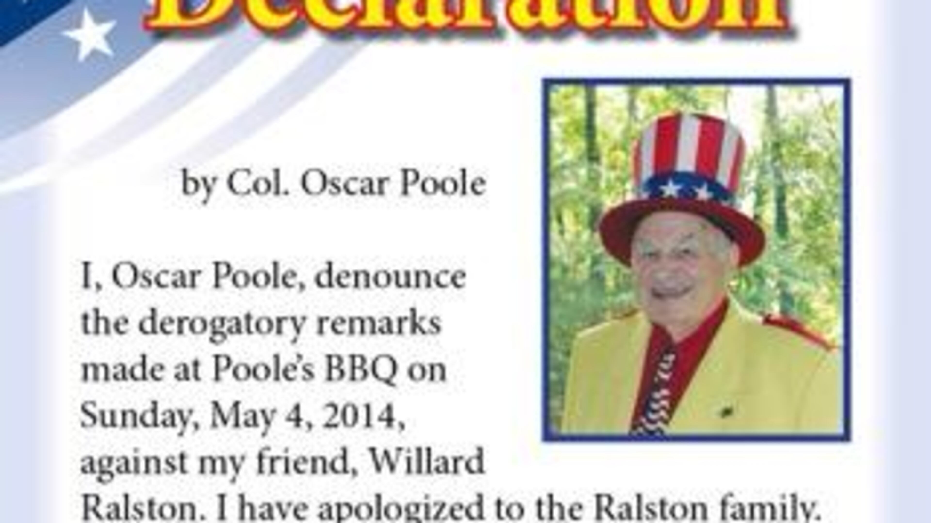 If you haven't heard of Col. Oscar Poole, you haven't paid attention to GOP politics in Georgia. With his brightly colored attire and patriotic hats, Poole has turned his Ellijay barbecue emporium into an obligatory campaign stop for Republican office-seekers.