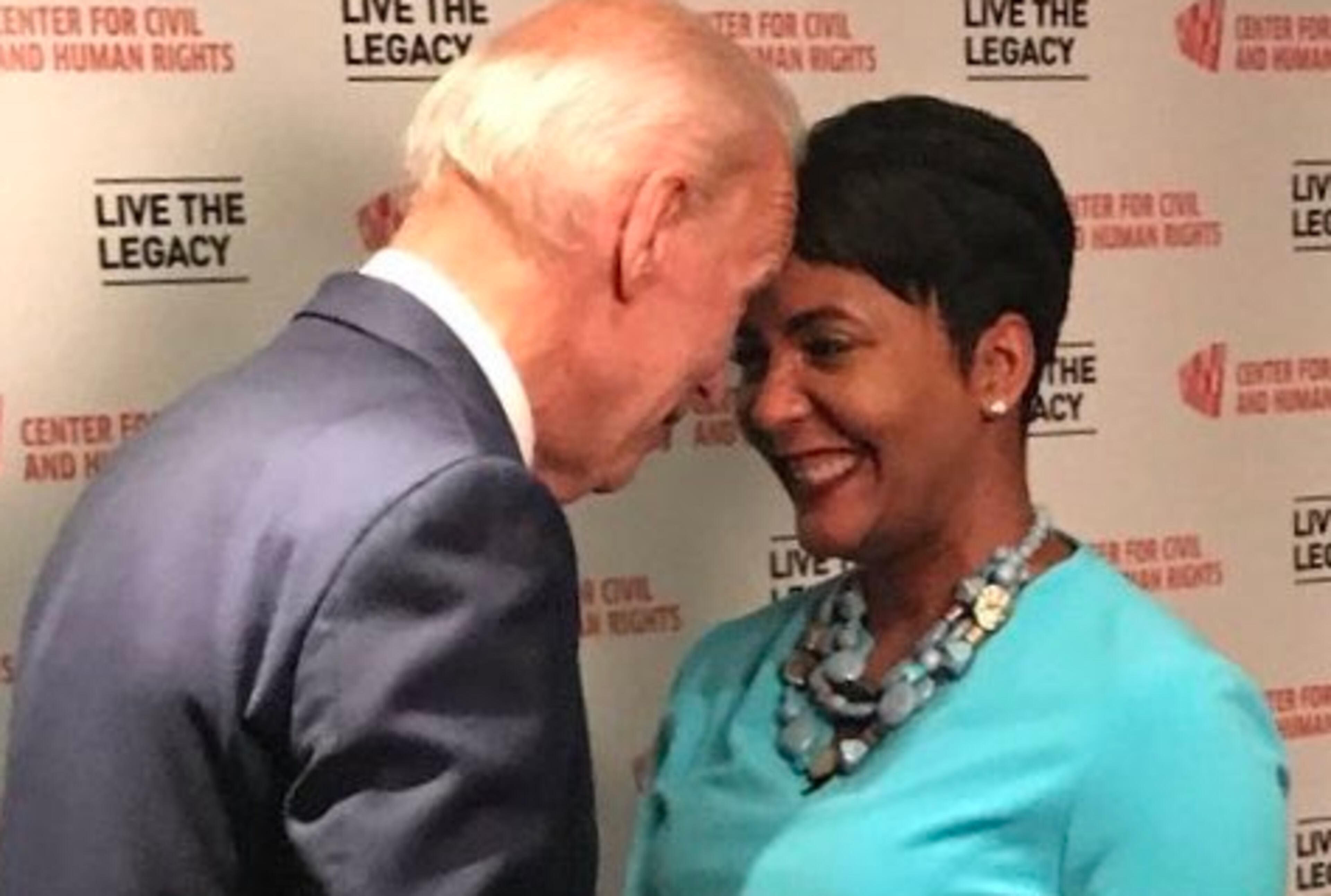 Joe Biden also received some support from another one of Atlanta's top Democrats. Shortly after the video hit, Mayor Keisha Lance Bottoms posted a photo of her and the former vice president smiling, foreheads touching each other, with the Twitter message: