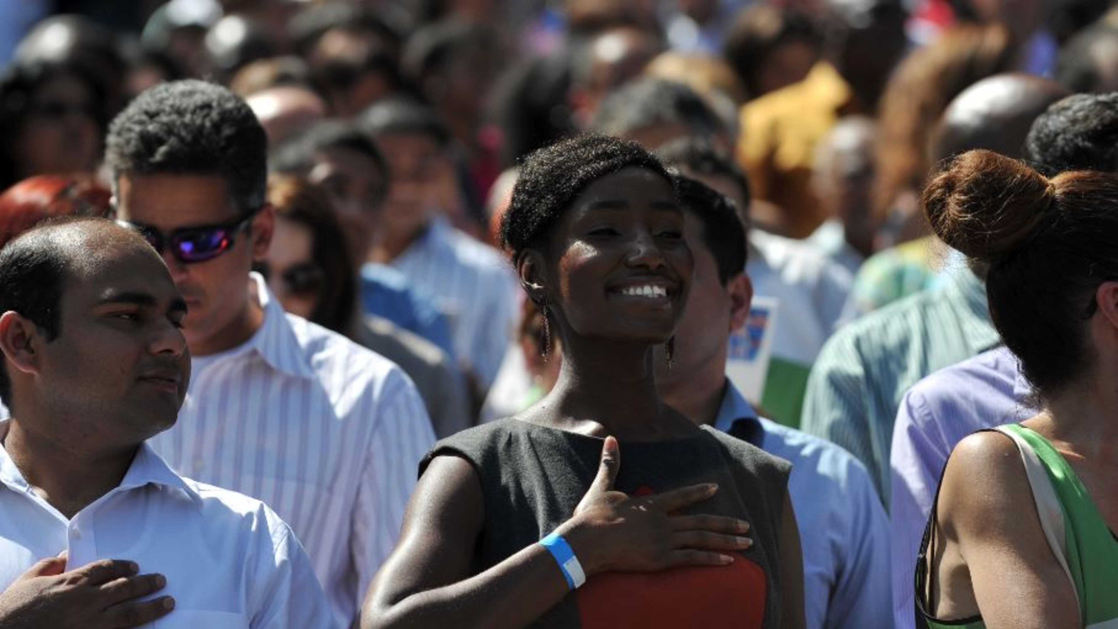 In a piece on Wednesday's swearing-in of 1,000 new U.S. citizens during a pre-Braves ceremony at Turner Field, the AJC's Jennifer Brett noted a bit of partisanship that accompanied the festivities: