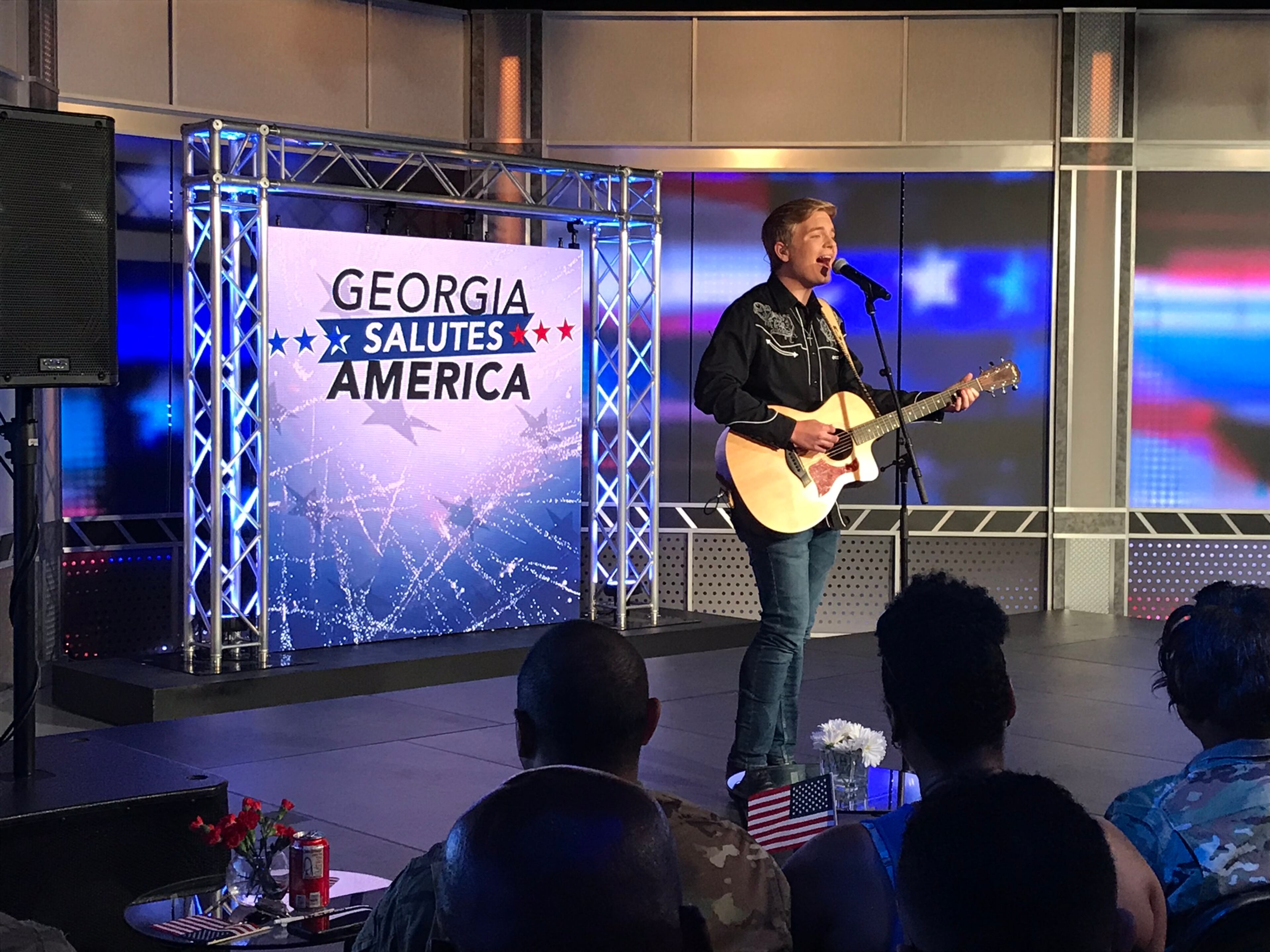 In a pre-taped segment shot at WSB-TV studios before military families, fans and family members, he sang several songs including an original tune. The live portion including fireworks will be at International Plaza, the green space between the Georgia World Congress Center, Mercedes-Benz Stadium and Philips Arena, instead of Centennial Olympic Park because of renovations.
