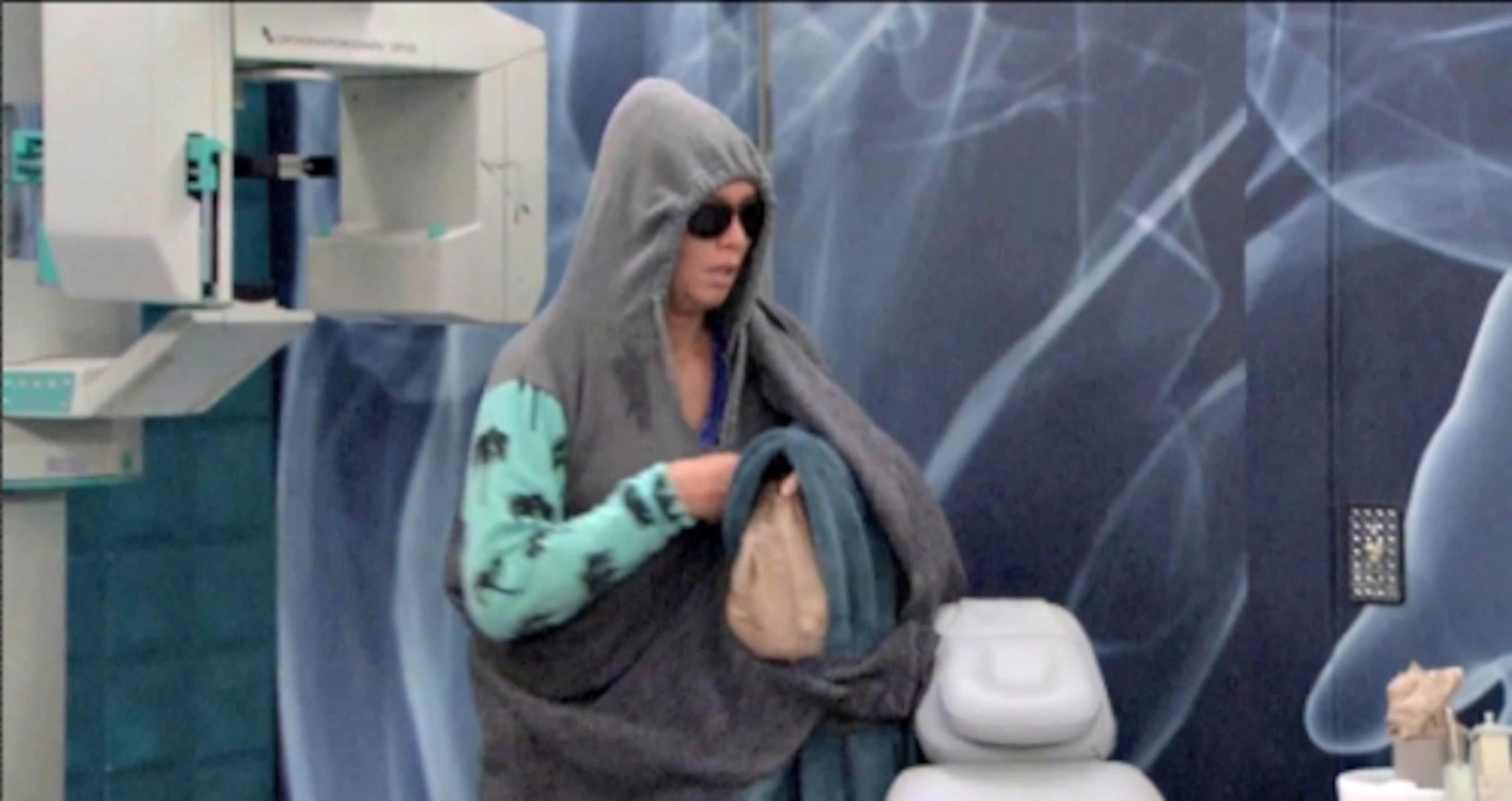 Last week, she spent hours wrapped in a blanket wearing sunglasses talking to nobody hiding in the diary room.