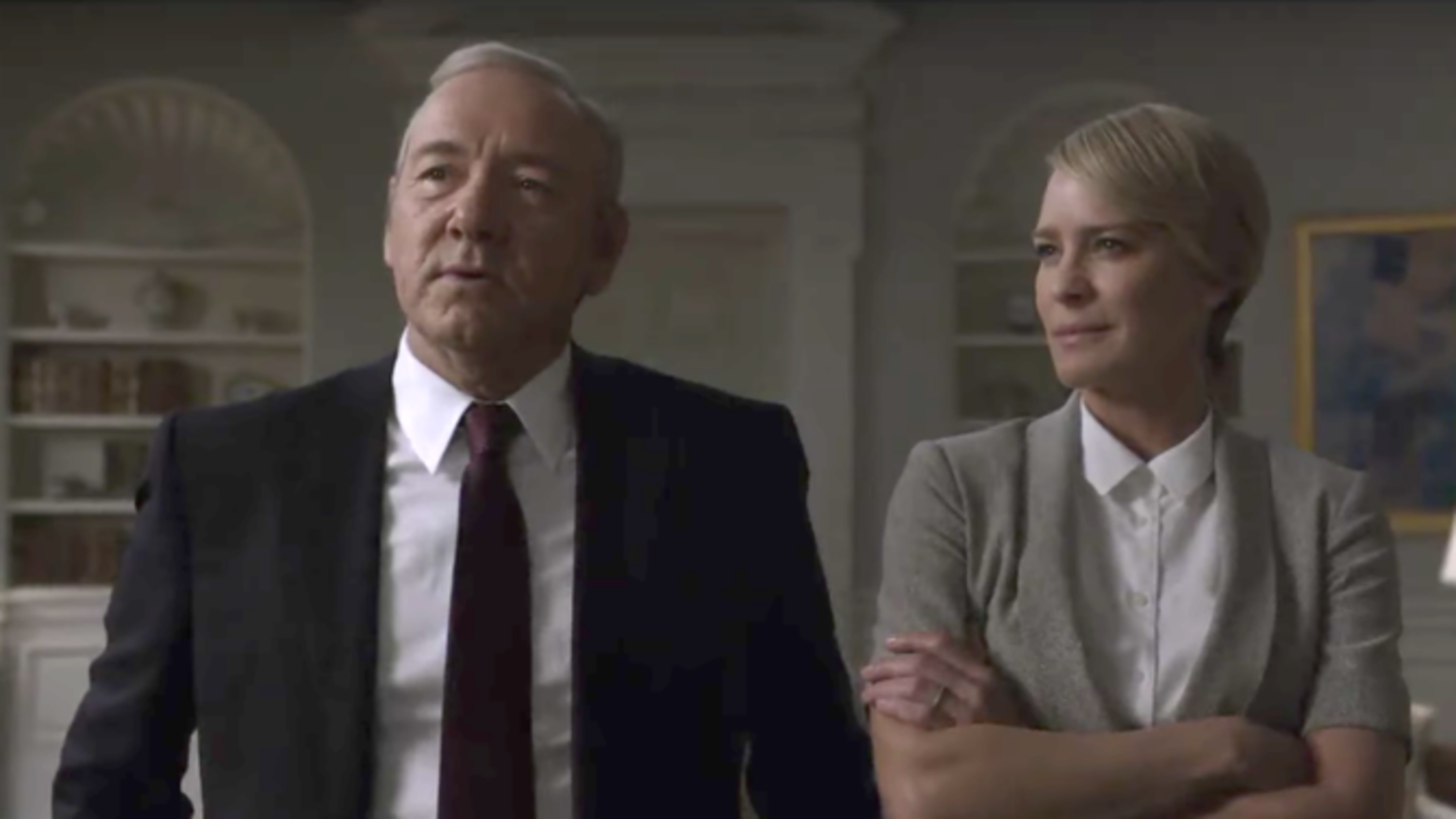 Season 5 picks up right after Season 4, with President Frank Underwood (Kevin Spacey) battling for his political life in a contentious election while also struggling to maintain his marriage with his wife, Claire (Robin Wright).
