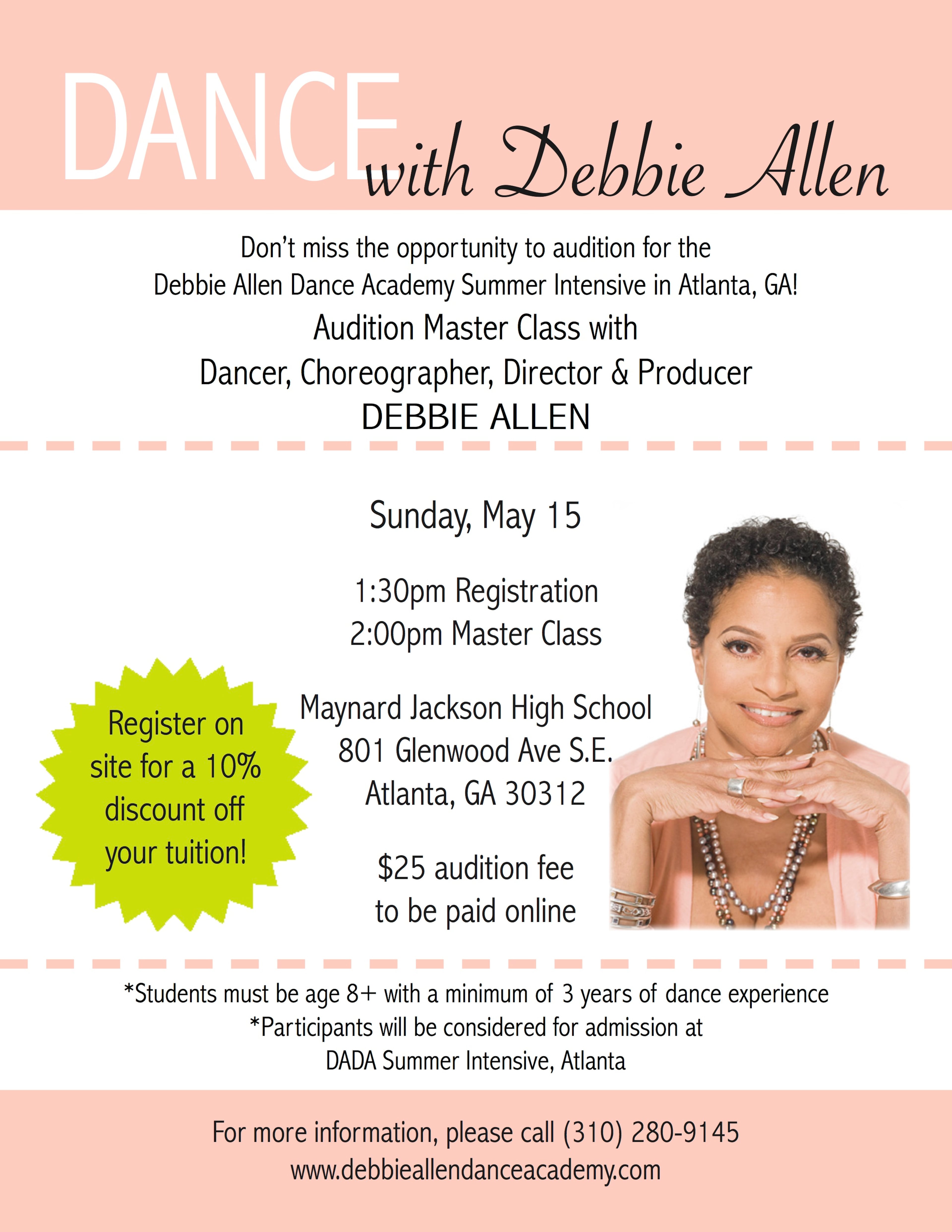 Three decades later, those words still resonate for Allen, who is teaching a master class Sunday in Atlanta and seeking students for her Debbie Allen Summer Intensive camp in Atlanta for a second year. (Pre-register here.)