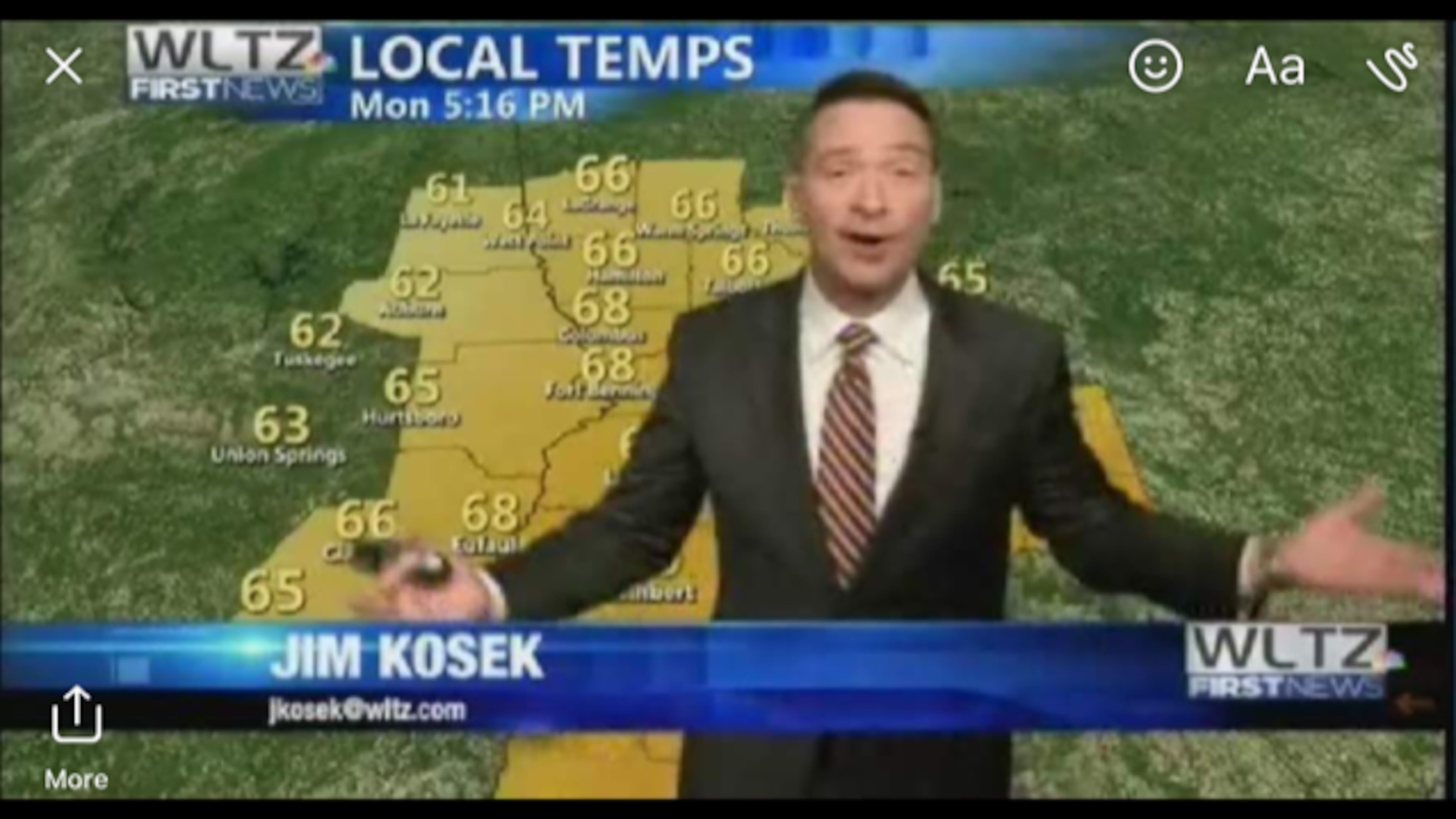 Jim Kosek , former chief meteorologist at CBS46 Atlanta, has found a new job as a chief meteorologist at the NBC affiliate WLTZ-FM in Columbus, GA.