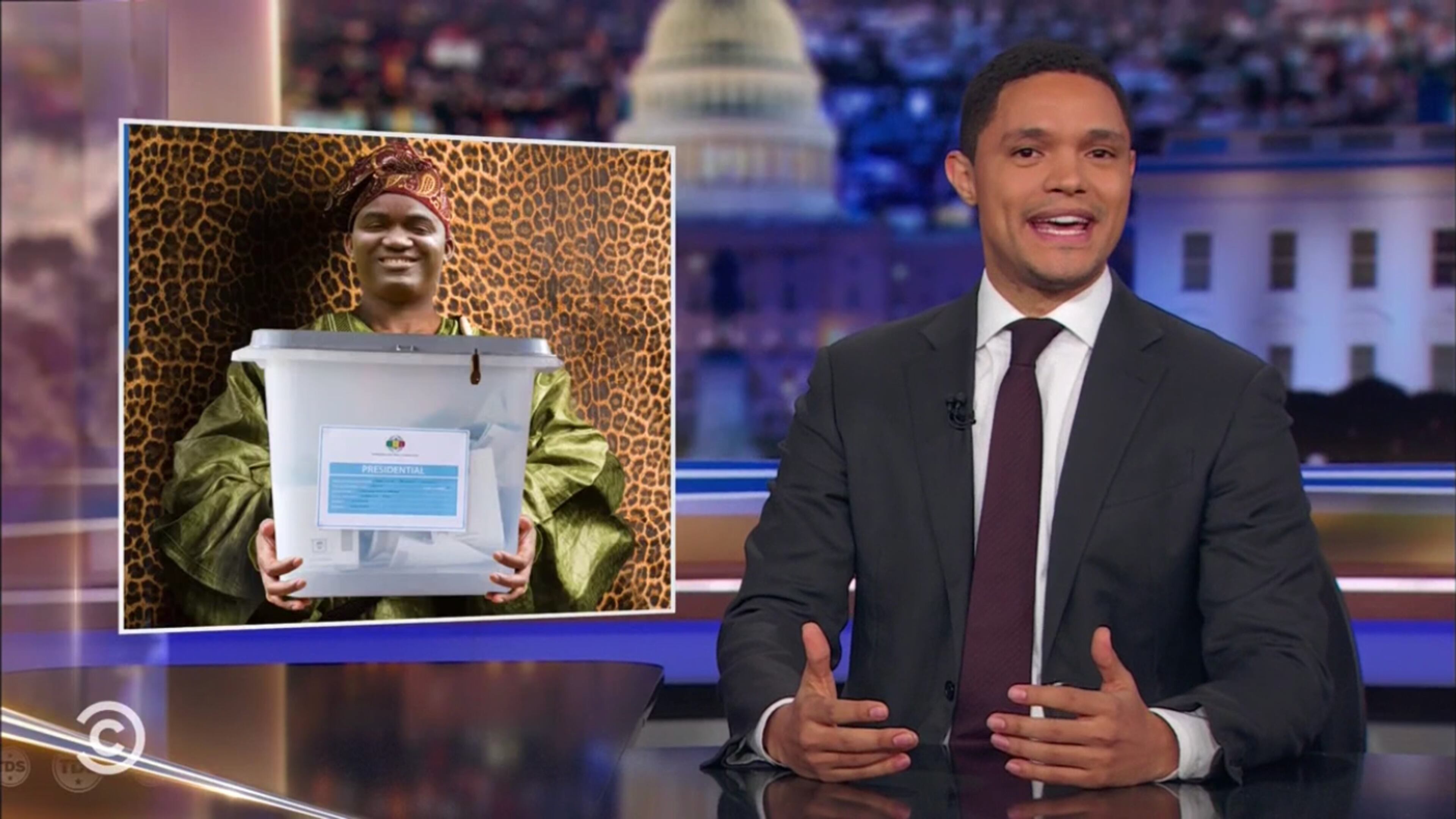 He compared this to African-type level shadiness. He imitates an African leader: “Okay, now that everyone has voted, I’m going to take the ballots into the other room and when I come back, I’ll tell you how I won, I mean, who won.”