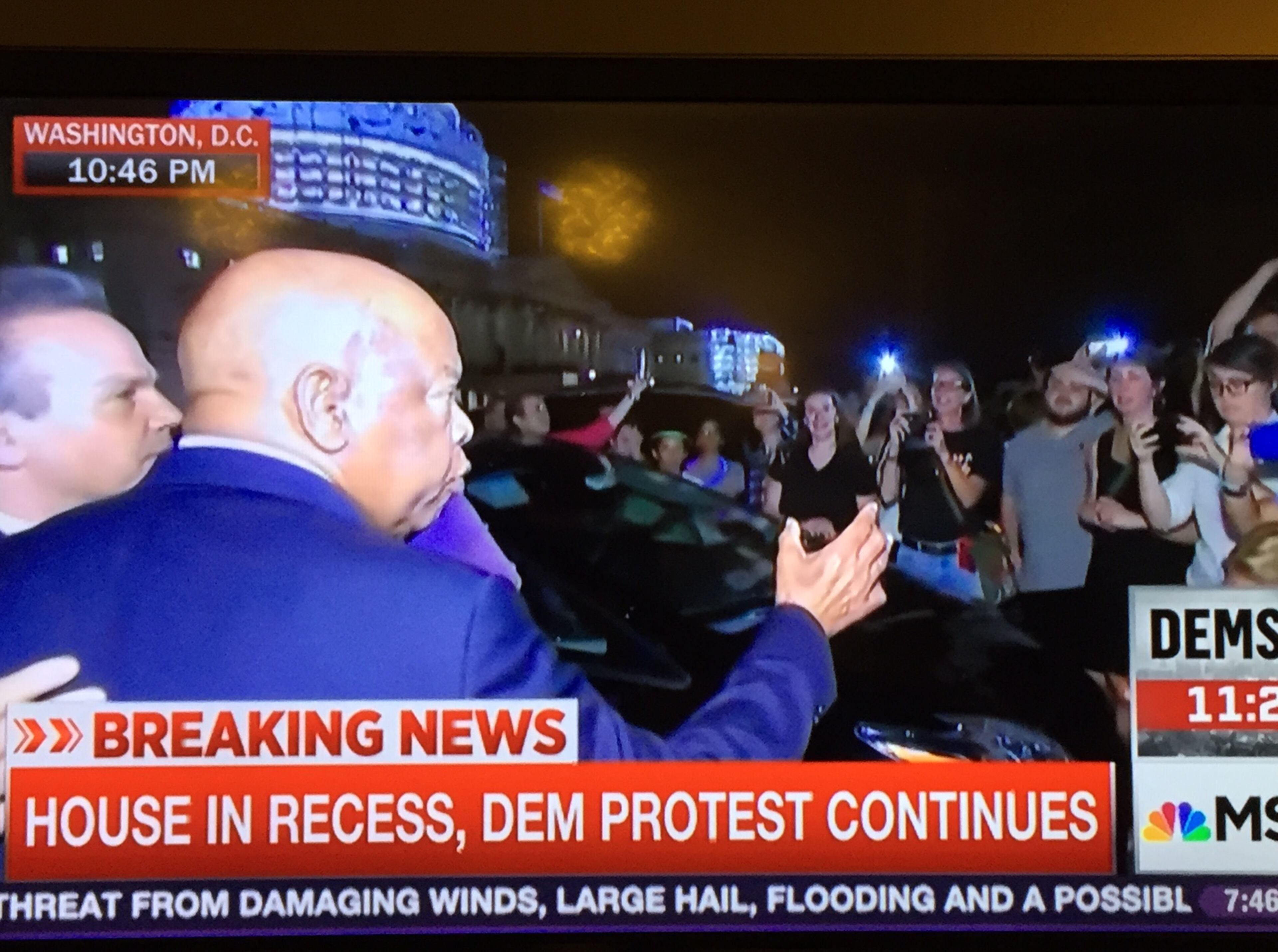 CNN and MSNBC spent much of the evening covering the sit in. C-SPAN lost its feed at 10:31 p.m. when the Republicans adjourned after being in session for just 30 minutes. (The Republicans have control over the cameras.) The Democrats supplemented with Periscope and Facebook feeds at different times during the day although technically video and photos are forbidden on the House floor.