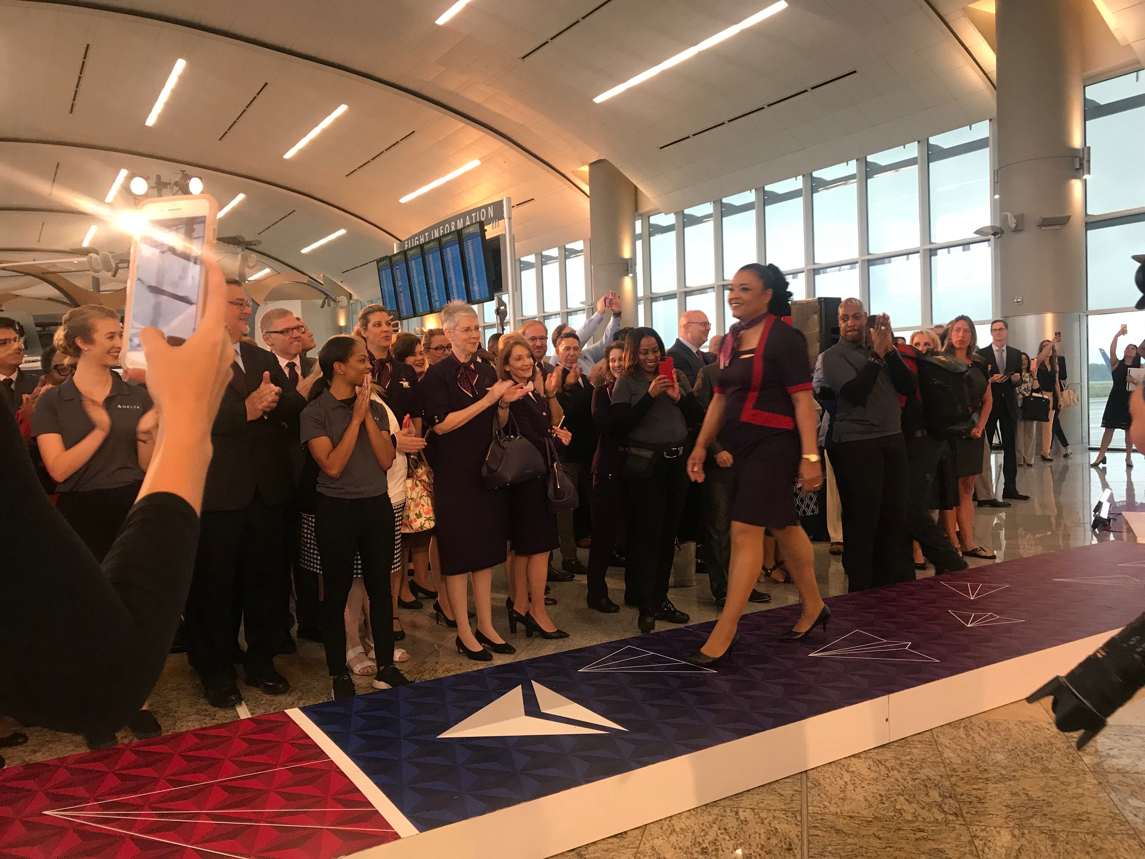 Delta Air Lines rolled out its new employee uniforms on flights and at airports around the world Tuesday with an early morning fashion show at Hartsfield-Jackson International Airport.