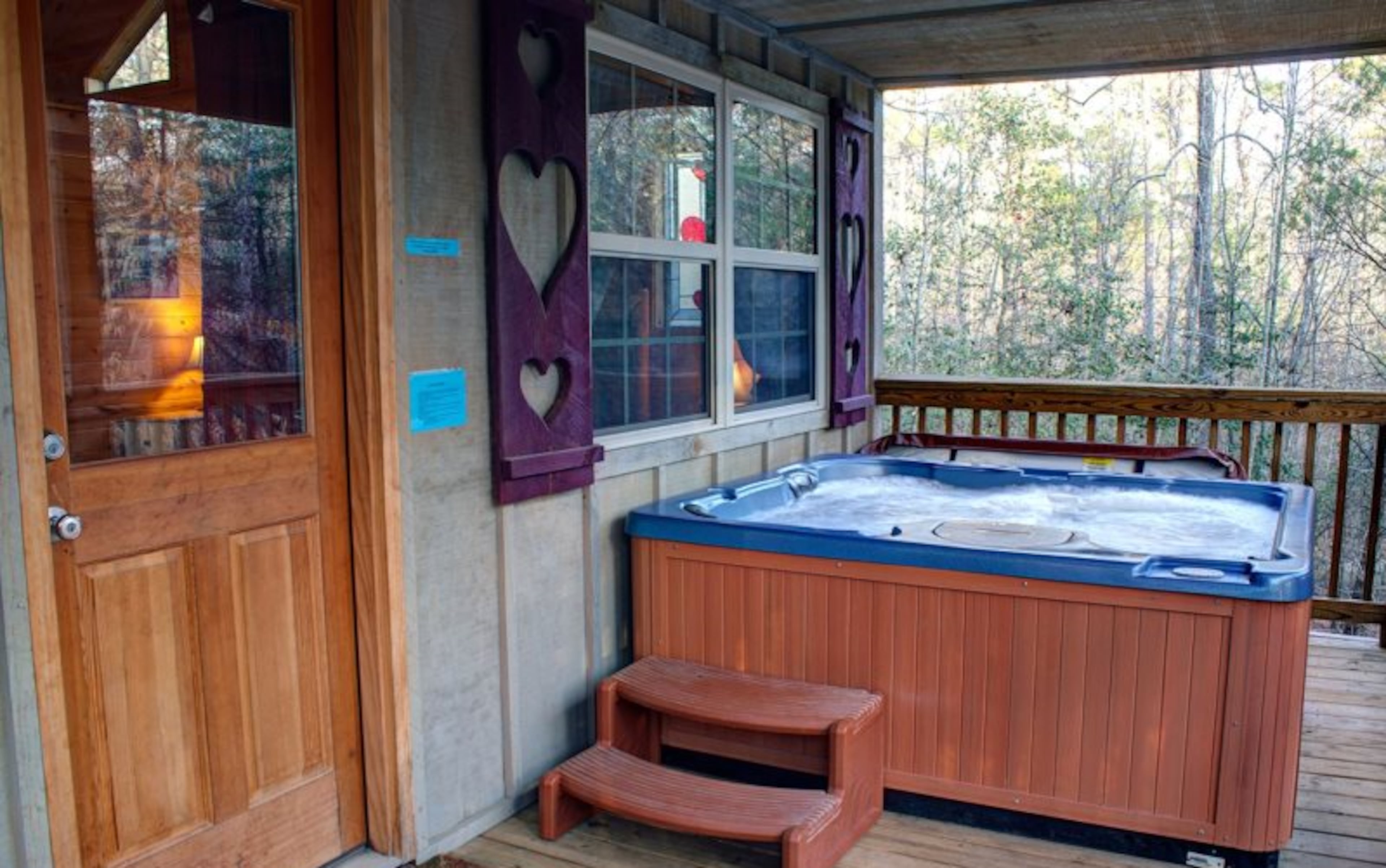 This cabin is tiny and romantic, built by local artisans and with a timber frame wood interior and porches. Just a 10-minute drive from Georgia's alpine tourist town of Helen, it has plenty to keep you there, too, including indoor jacuzzi, outdoor hot tub, fire pit and two porches.