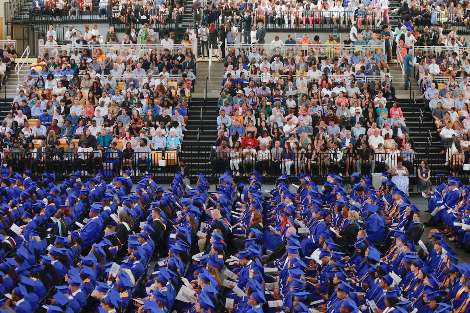 Those coming in late had to squeeze into single seats at the center of rows while “Pomp and Circumstance” played, or stand along the railings on the upper level as the graduates’ names were called. Each graduate was allowed five tickets, and anyone who needed more had to enter a lottery or scour social media for families willing to share extras.