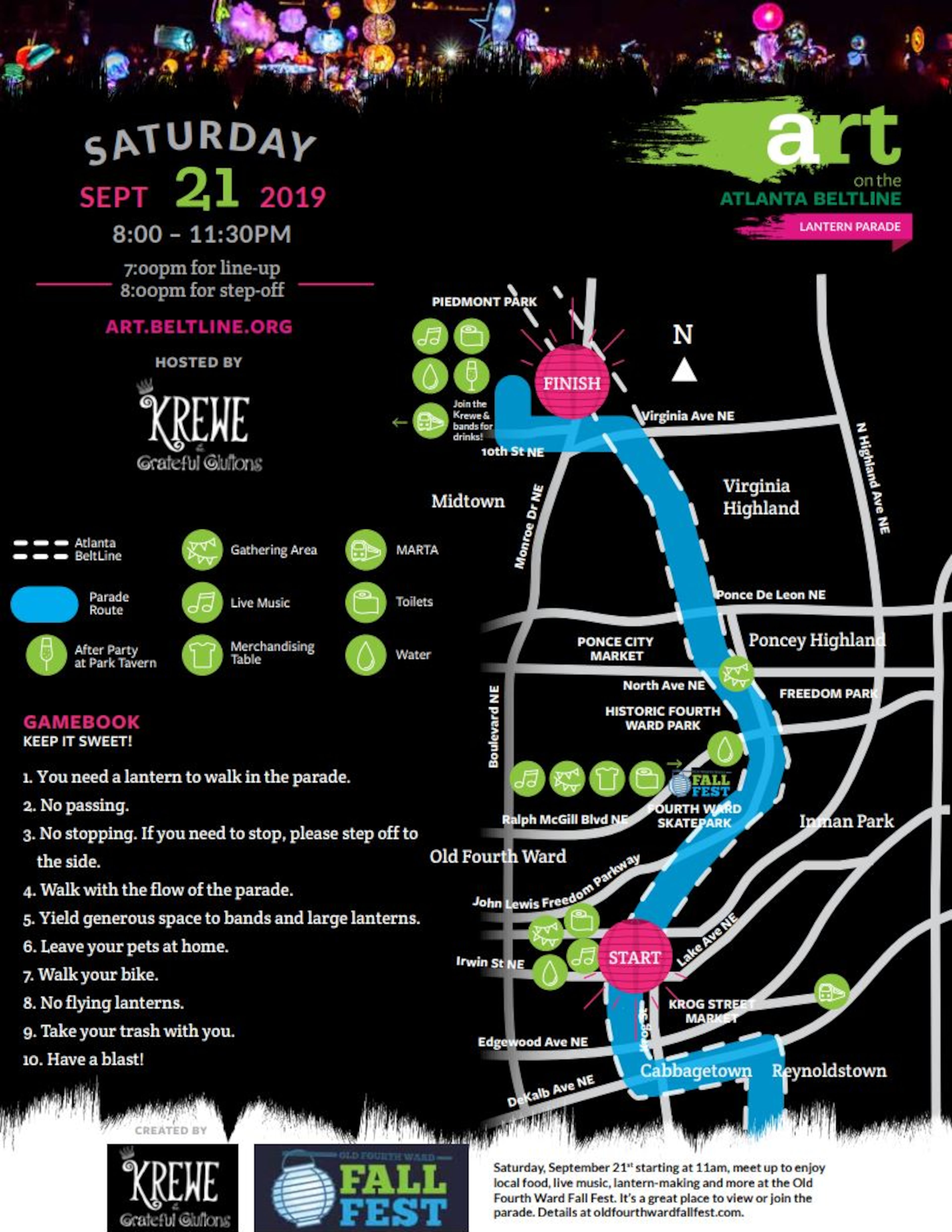 The parade will begin on the Eastside Trail where it crosses Irwin Street / Lake Avenue and winds north to Piedmont Park. All are welcome (no registration required), and there’s no fee to participate. There are some rules you need to follow, however.