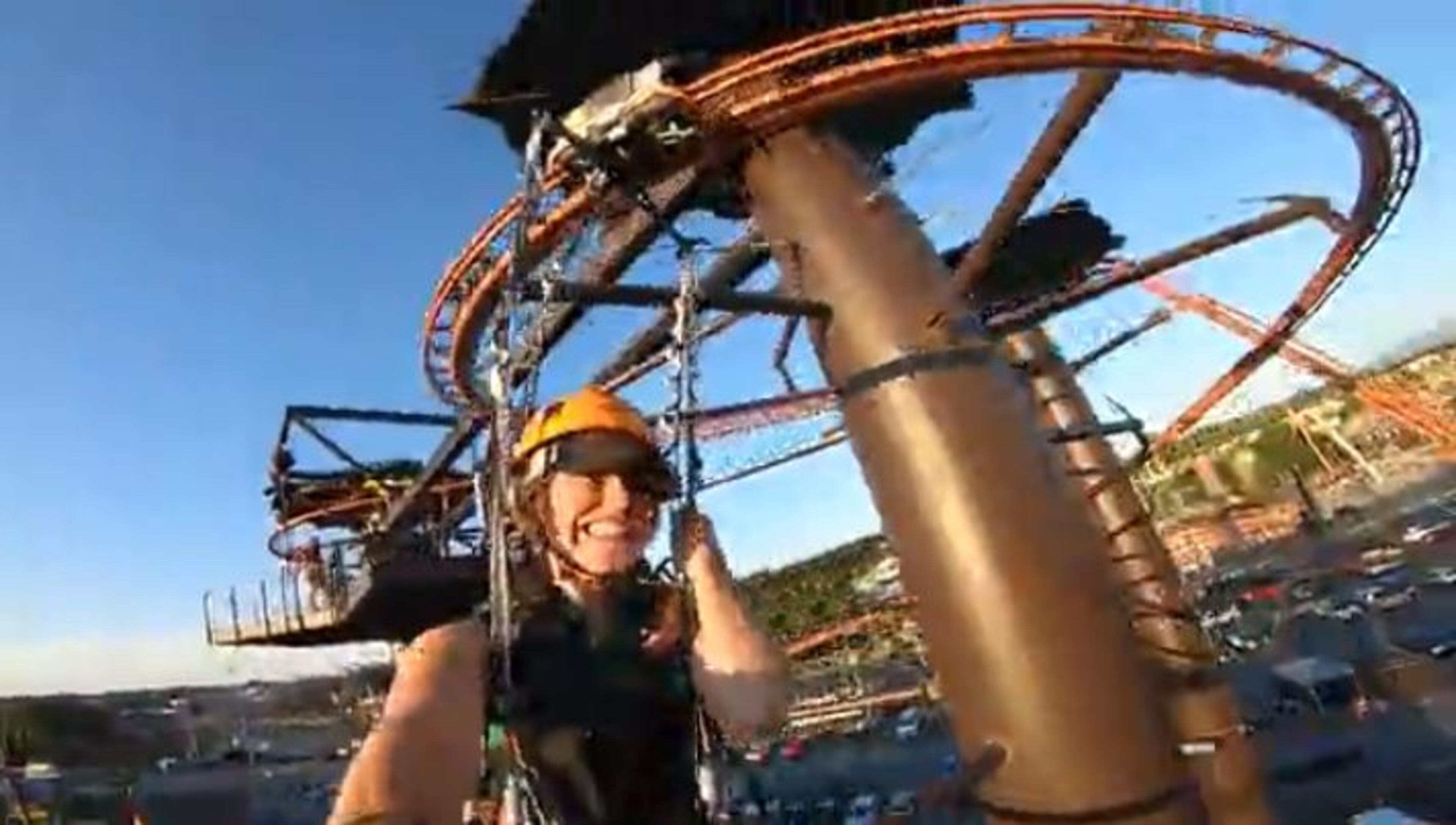 Instead of traveling in a straight line, riders will drop and wind along a track going about 15 mph.