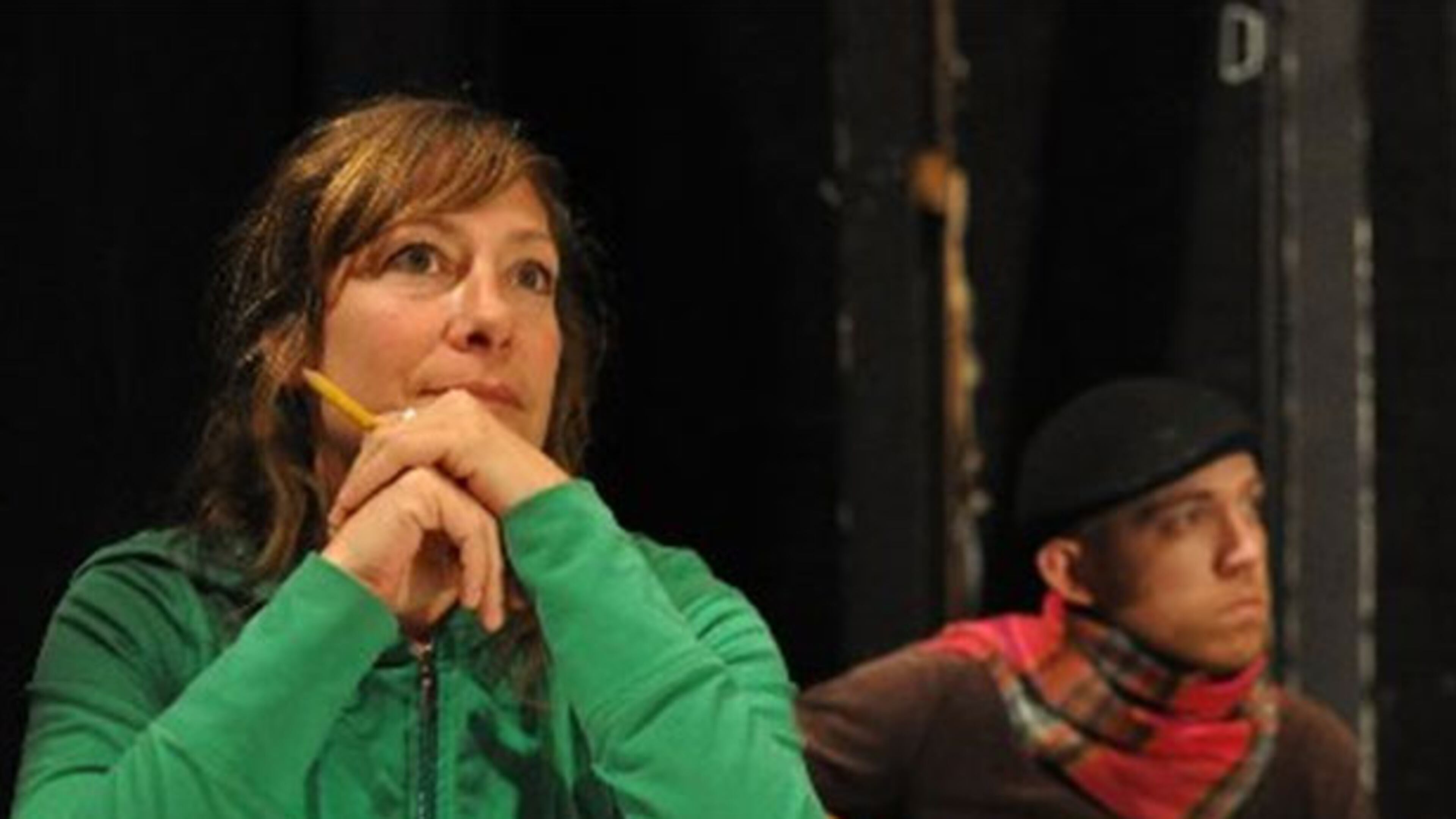 In a variation on thinking globally but acting locally, Stryk essentially uses the sweeping historical events of 1989 as a symbolic backdrop to the intimate personal story of Marianne, a by-the-book bureaucrat in a West Berlin employment office where, as she puts it in her running dialogue with the audience, “The reality is there’s no work.”