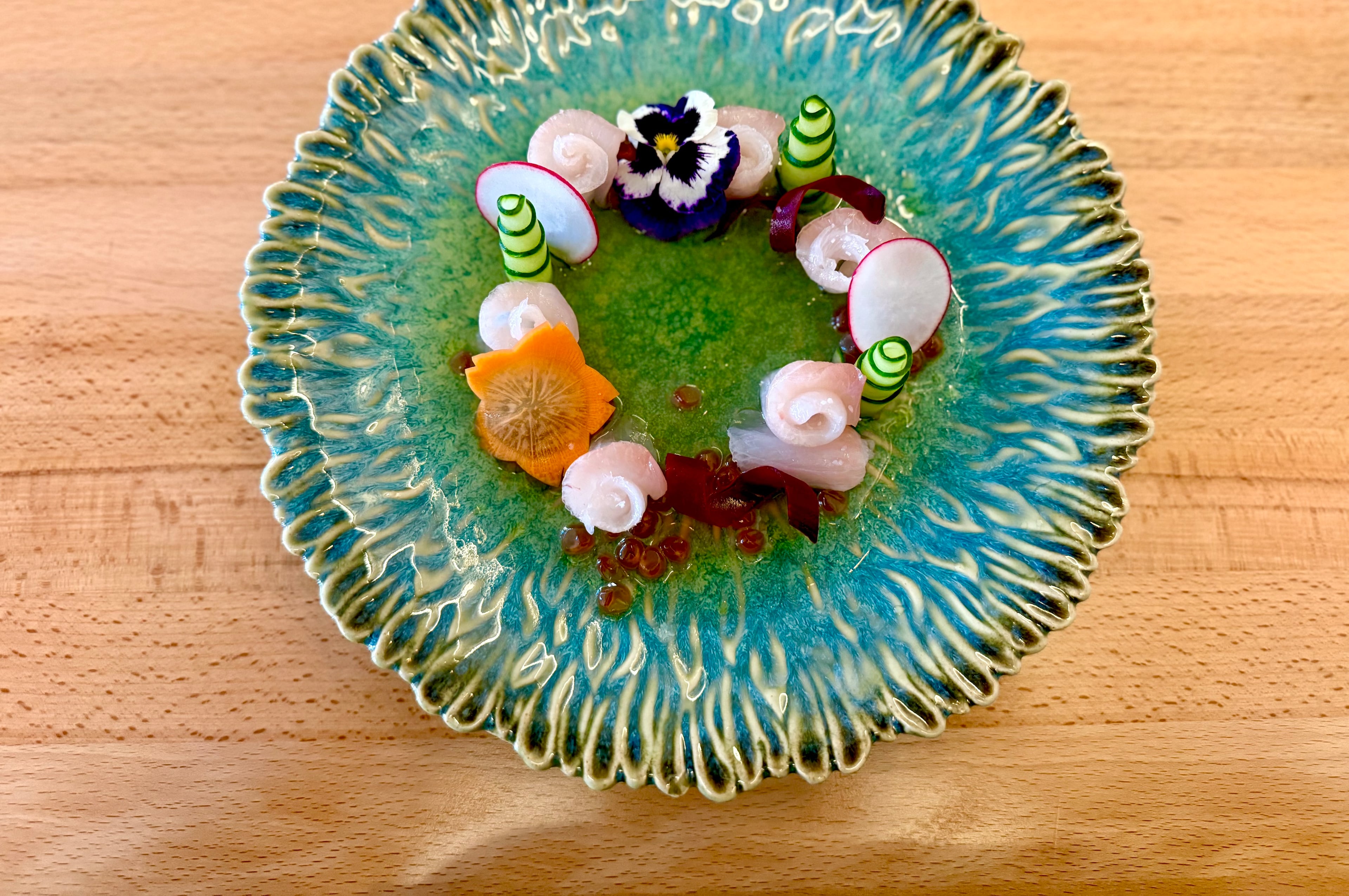 Each serving of the bisque at the restaurant is a little more than a cup. The luxurious soup is garnished with buttery brioche croutons that soak up the bisque like a sponge, along with a swirl of creme fraiche and chopped herbs such as parsley, chives or chervil.