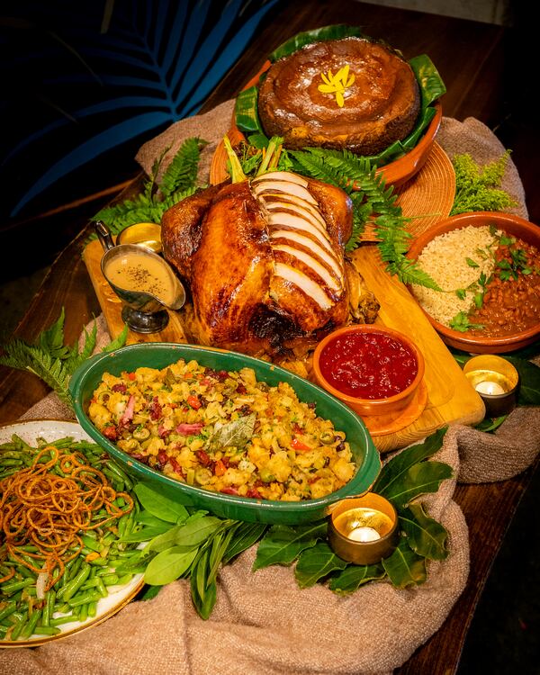 Castellucci Hospitality Group. Thanksgiving meal options include a dinner package with turkey and family-style sides like sage and walnut sausage stuffing, mac and cheese and pumpkin Basque cheesecake. Pickup will be on Nov. 27 from 10 a.m. to 4 p.m. at the Iberian Pig in Buckhead, Double Zero or Sugo.