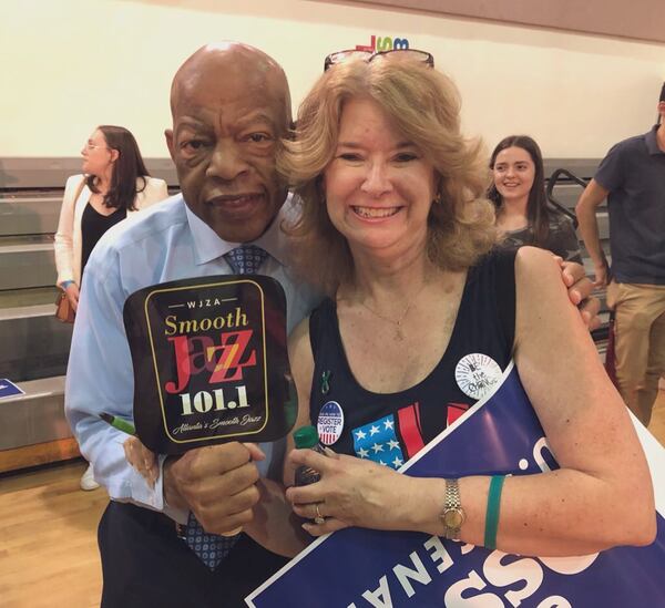 “Keep getting in good trouble,” Rep. John Lewis quietly said to me as we posed for a photo. We were at a register-to-vote rally for Jon Ossoff in September 2019. He had gathered around him so many people, who wanted to be in the presence of a civil rights icon. It was a fairly warm day, so I had brought my WJZA/ Smooth Jazz 100/101 hand fan with me. I worked at WJZA as an account executive. He saw my fan and said “I like smooth jazz. I listen to that station.” So I quickly placed the fan in his hand, and the photo was taken.