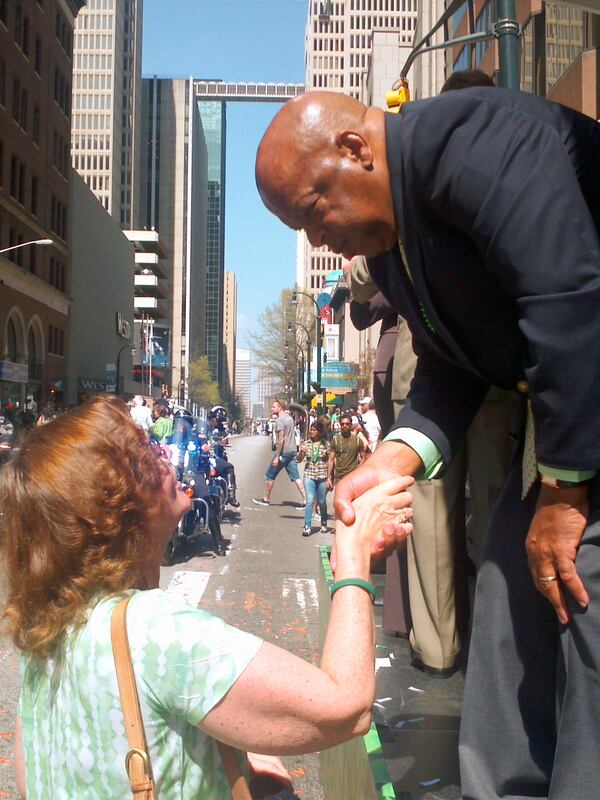 I met John Lewis in 2013 at the St. Patrick’s Day parade in Atlanta. I have to admit, when I moved to Atlanta in 1993, I didn’t know much about Mr. Lewis. I heard him speak at an AIDS Walk and I was mesmerized. I came home and read everything I could find about the man’s work. As the parade was finishing up, I saw him on the stage and no one seemed to be paying attention to him. I’m not the most forward person, but I wasn’t going to let my chance go by. I walked up to him and was warmly greeted with a handshake. He listened so politely as I gushed about how